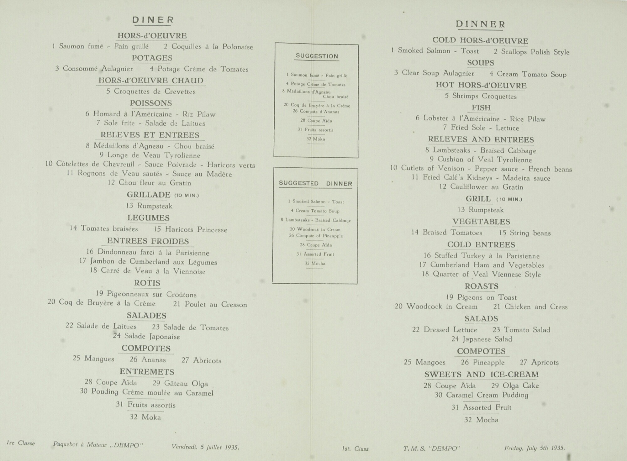 Menukaart van passagiersschip 'Dempo' van de Rotterd...