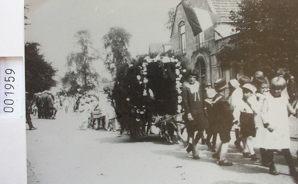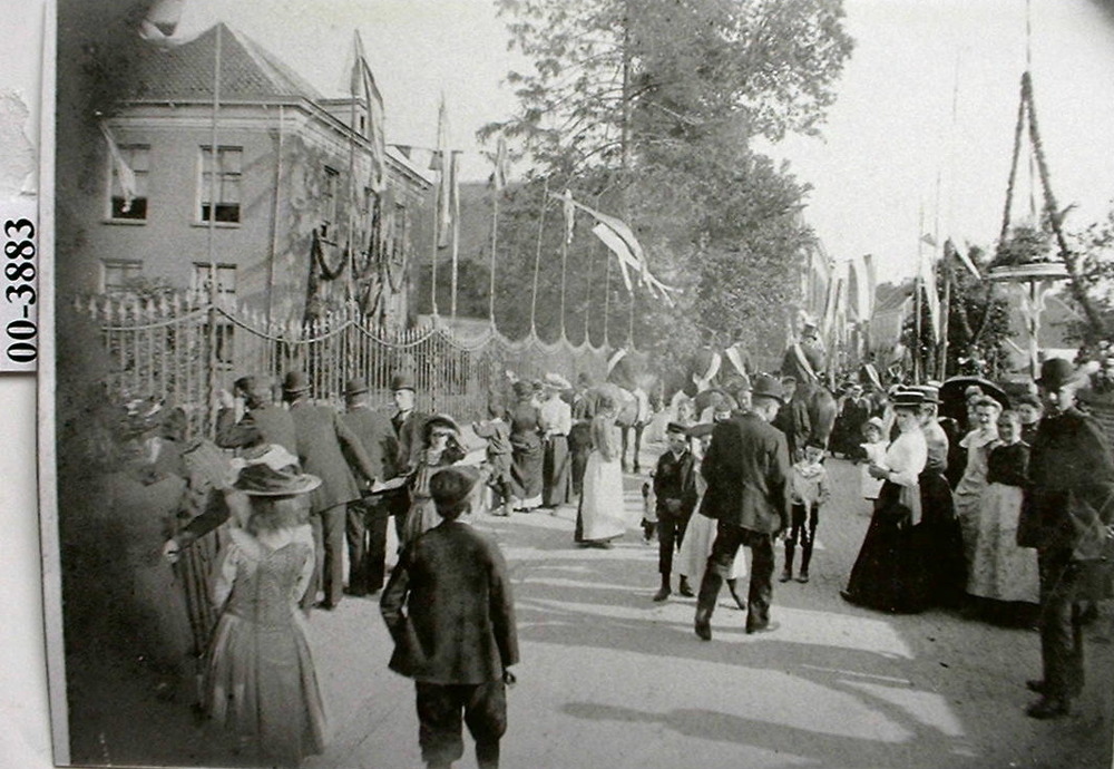 Een optocht in de Helmichstraat bij de Gouden Engel