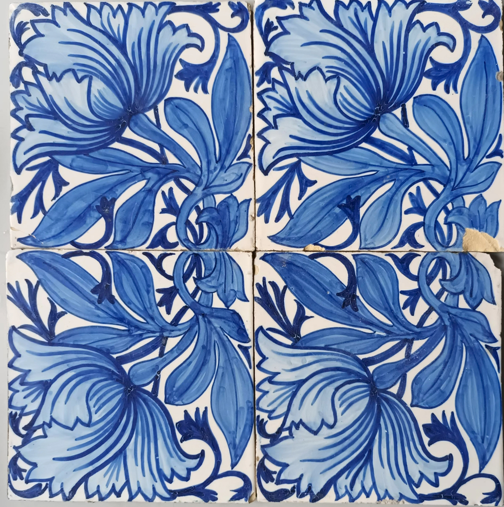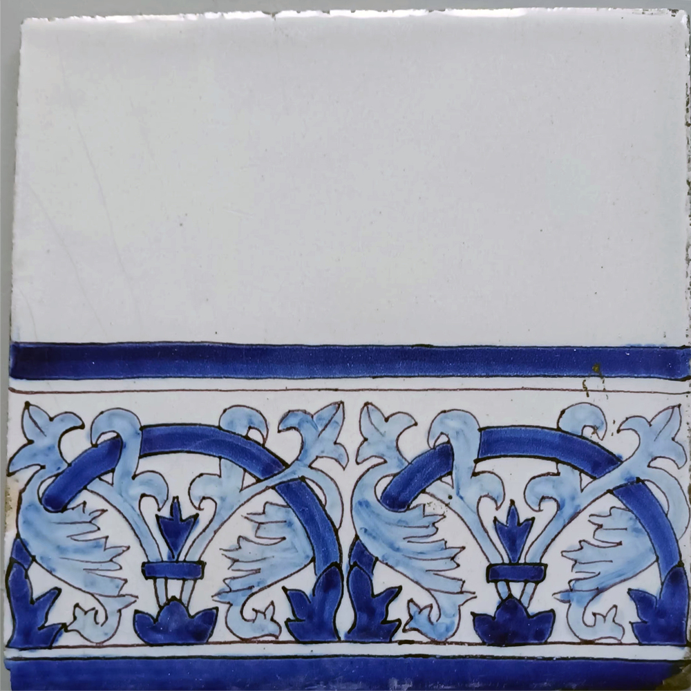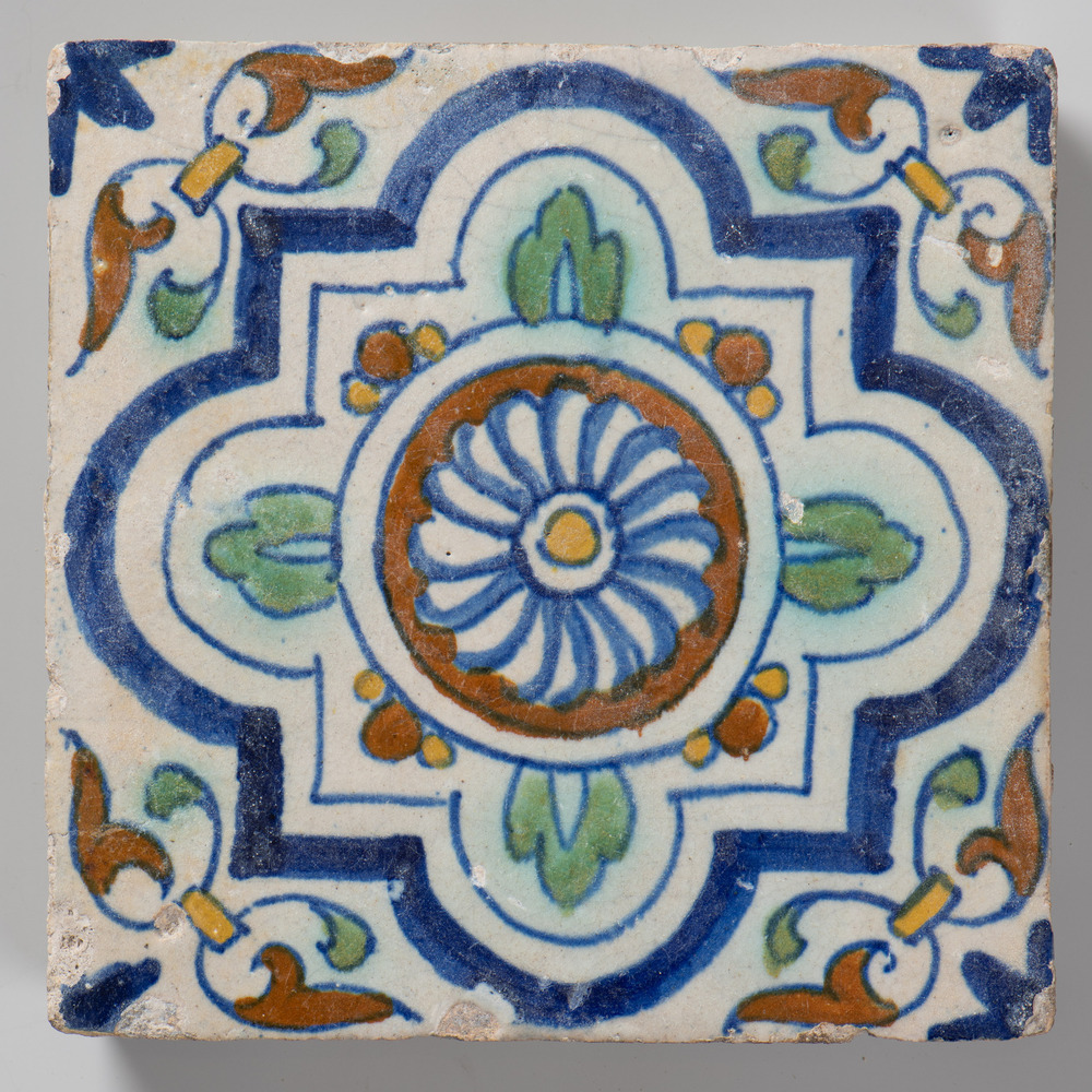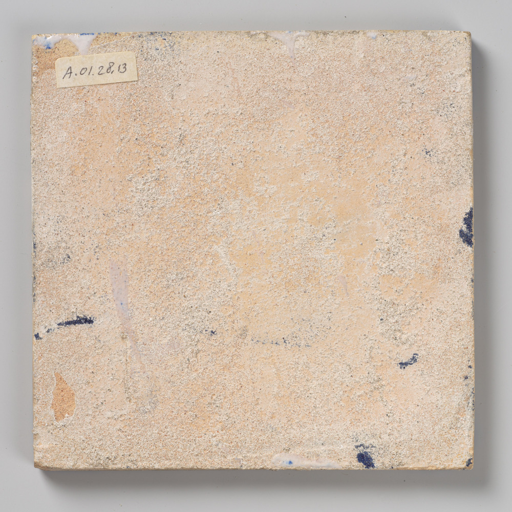 randtegel van keramiek met tinglazuur, voorstellende...