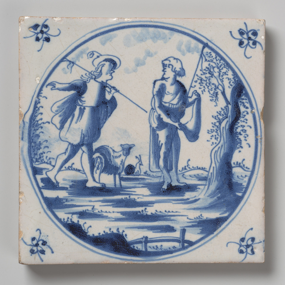 tegel van aardewerk met tinglazuur, voorstellende: h...