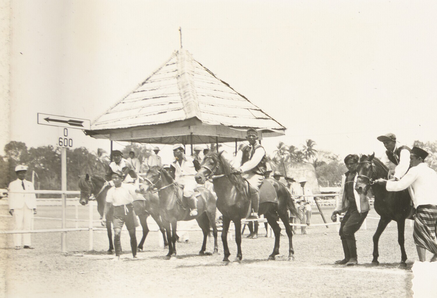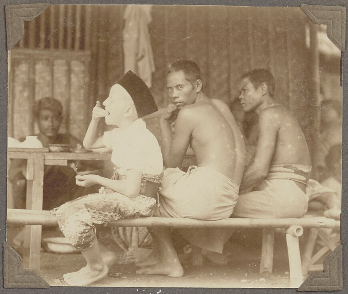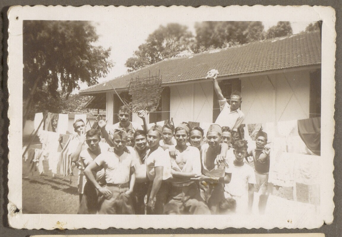 Javaanse jongemannen voor een barak