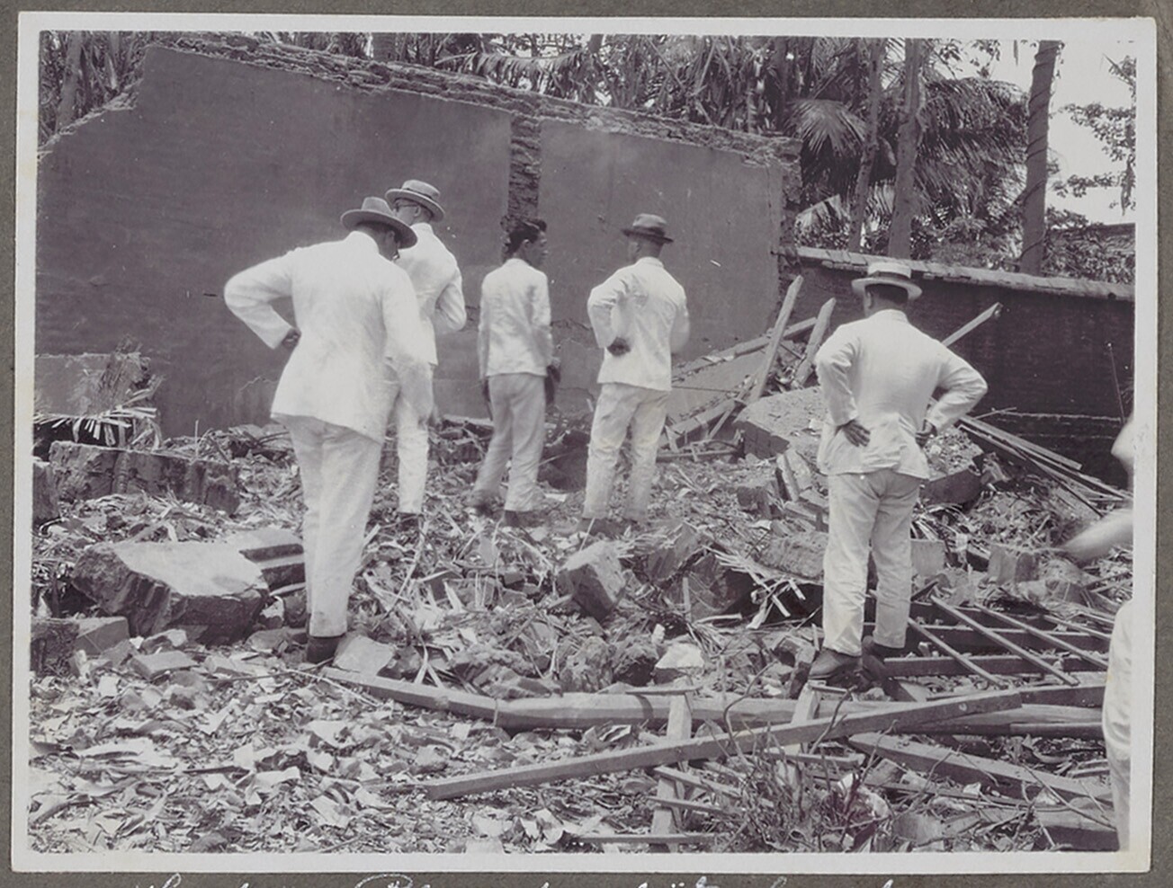 Groep Javaanse arbeiders bezig met het vrijmaken van...