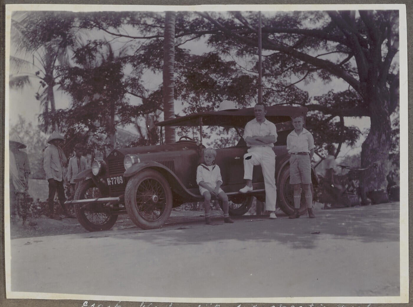 Javanen en Europeanen bij een auto