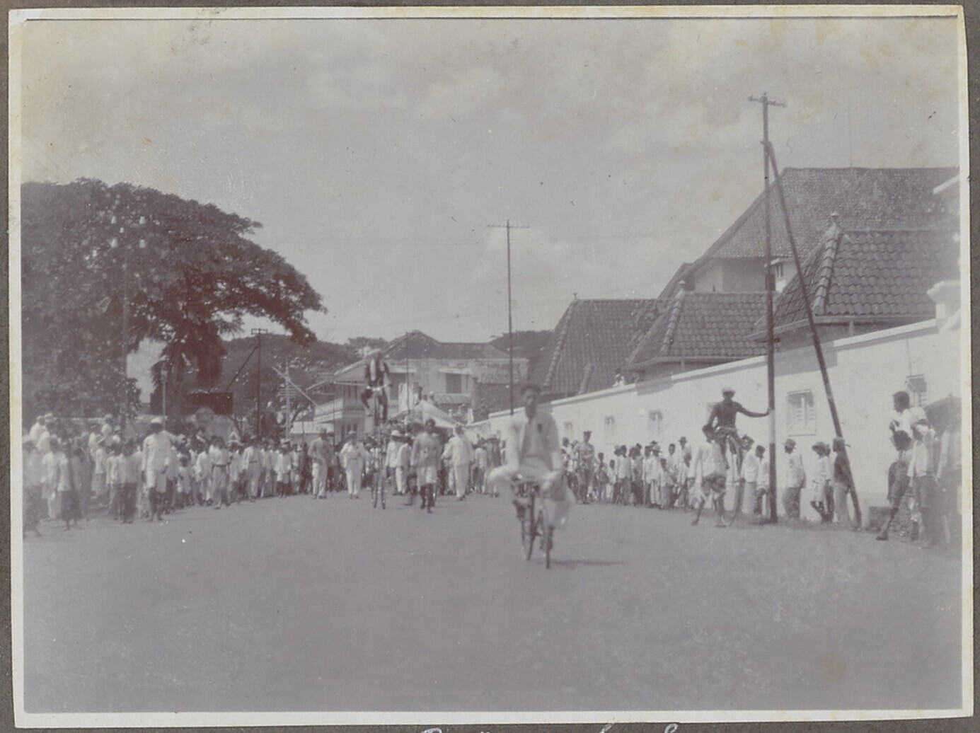 Groep Europese en Javaanse mannen tijdens optocht na...