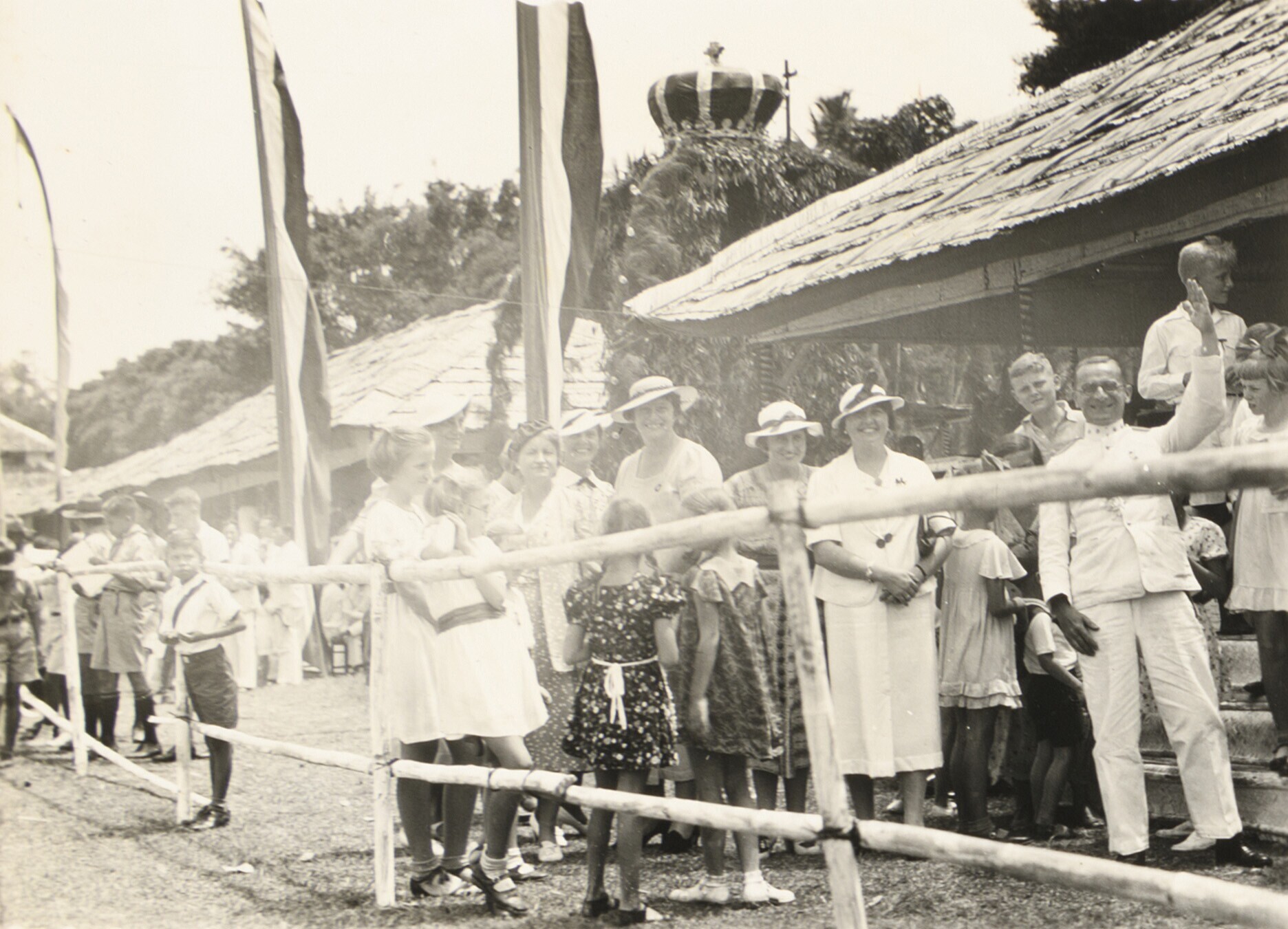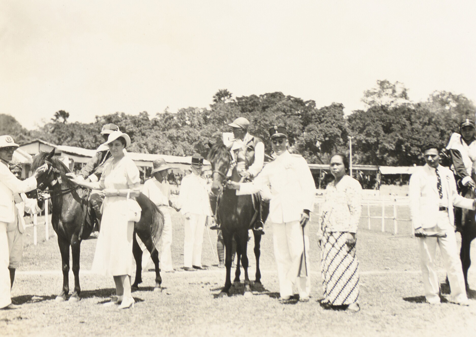 Groep Europese en Javaanse personen bij de bezemwage...