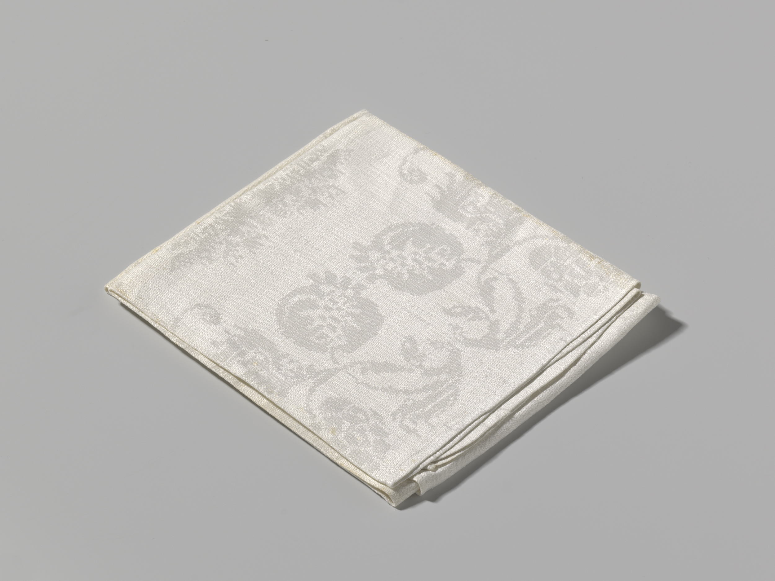 Fragment van een servet van wit linnendamast met een...