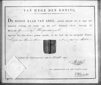 Oorkonde uit 1817 ter bevestiging van gemeentewapen ...