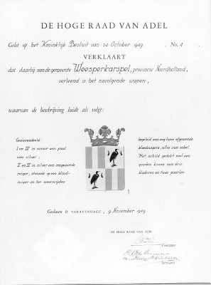 Oorkonde uit 1949 betreffende het gemeentewapen van ...