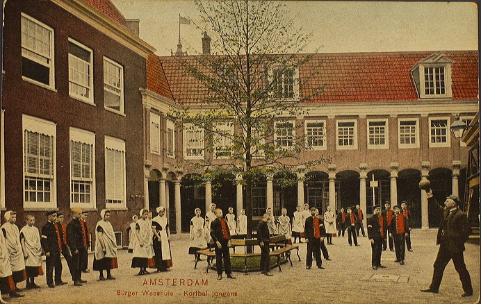 Prentbriefkaart Burgerweeshuis - 'Korfbal jongens'