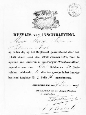 Inschrijvingsbewijs burgerweeshuis