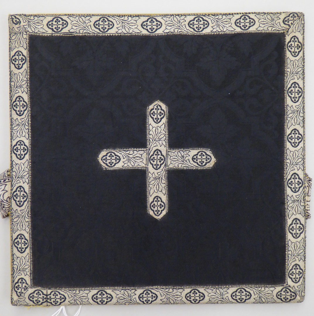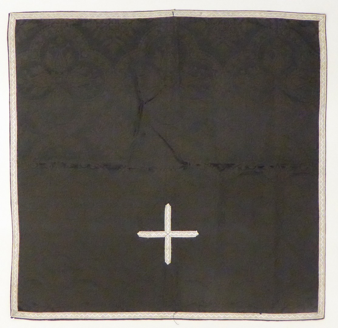 Zwarte manipel afgezet met biesje met vierpassen, wa...