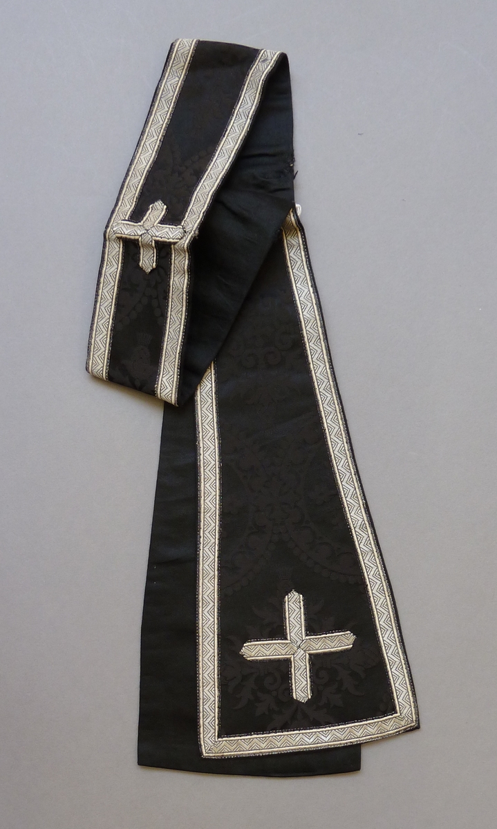 Zwarte stola afgezet met biesje met vierpassen, waar...