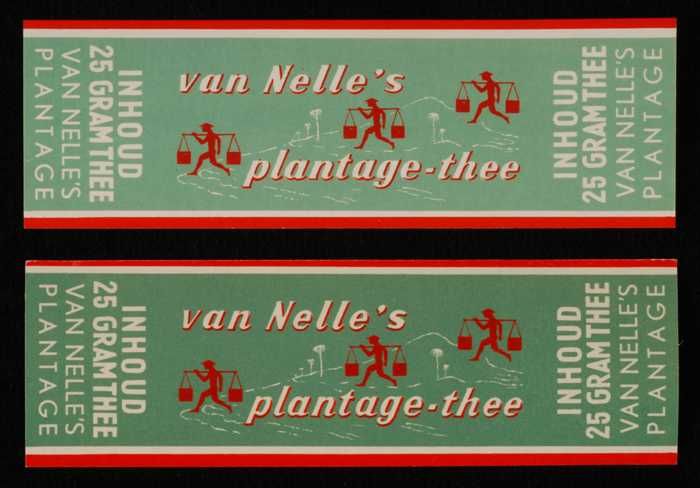Twee groene labels VAN NELLE'S PLANTAGE THEE, 100 gram
