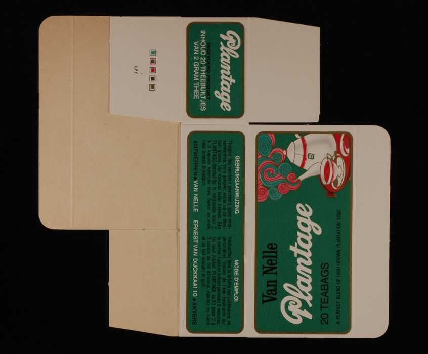 Ongevouwen, wit en groene doos VAN NELLE PLANTAGE TH...