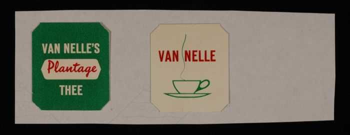 Twee wit met groene, kartonnen labels VAN NELLE'S PL...