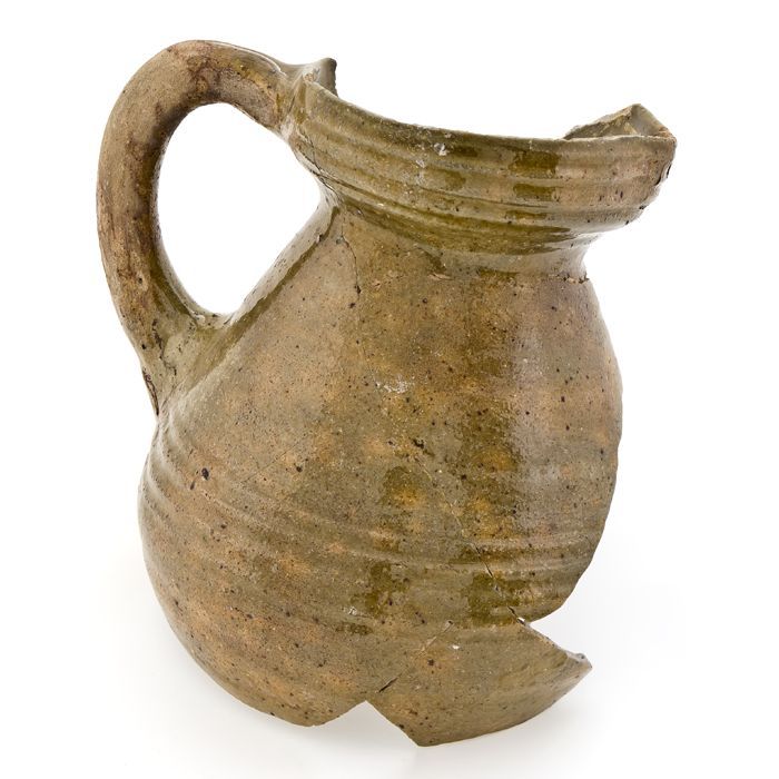 Fragment van schenkkan met manchetkraag, geheel gegl...