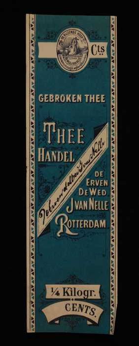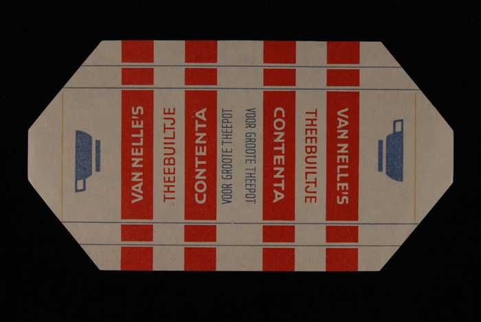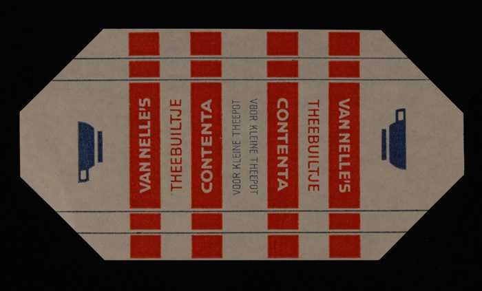 Blauw, papieren label VAN NELLE CONTENTA THEE