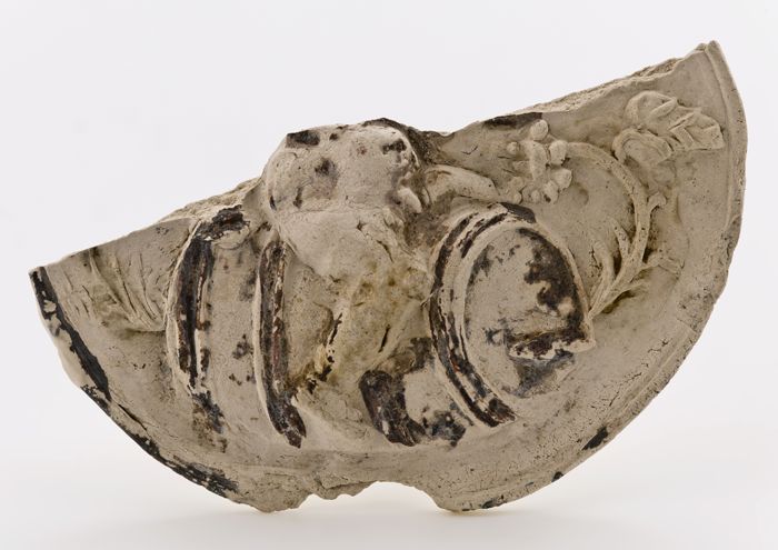 Fragment van pijpaarden zegel of tablet, waarop in r...