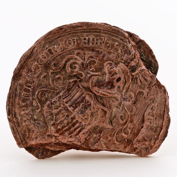Fragment van lakzegel met familiewapen en rondschrif...