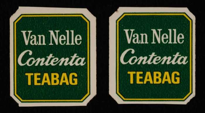 Twee groene, kartonnen labels VAN NELLE CONTENTA THE...