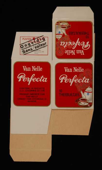 Blauw, geel, rode, kartonnen verpakking VAN NELLE CO...