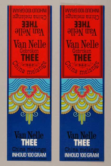Blauw, papieren label VAN NELLE THEE, 250 gram