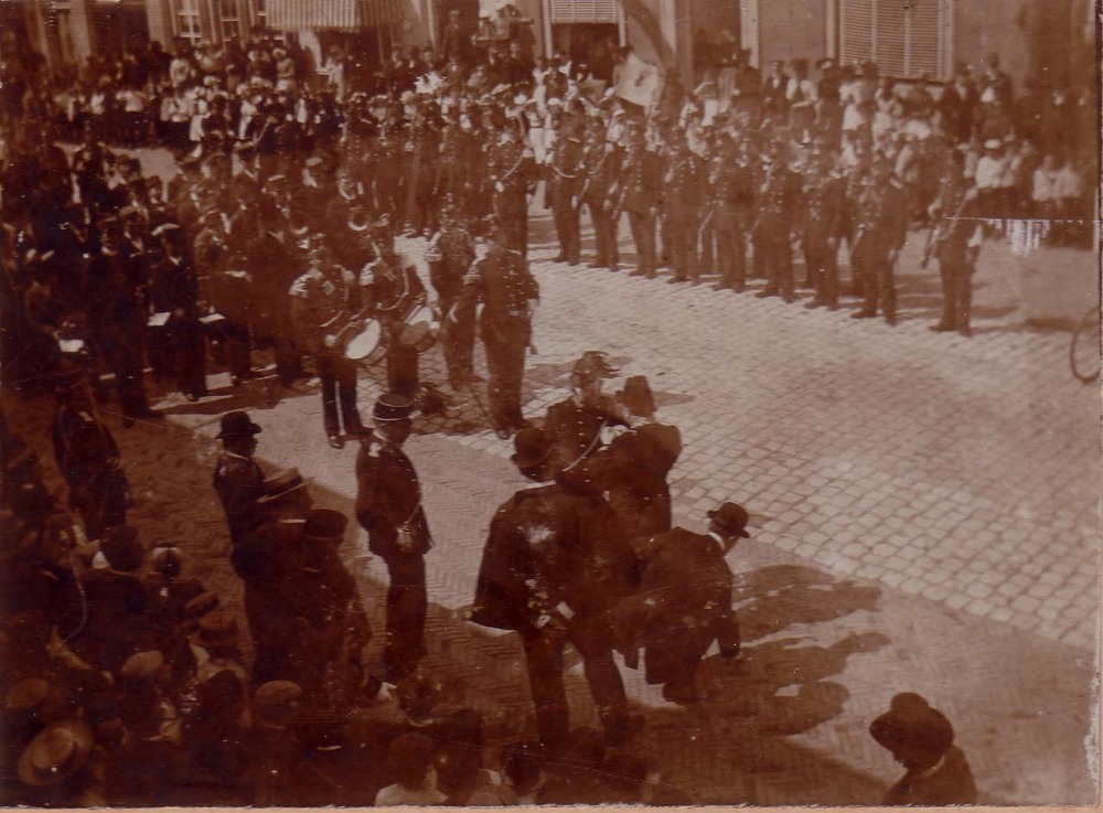 Inspectie van de schutterij op de markt in 1903.