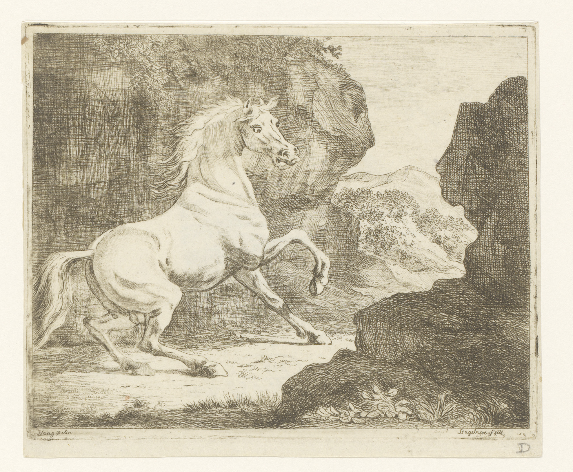Steigerende witte hengst