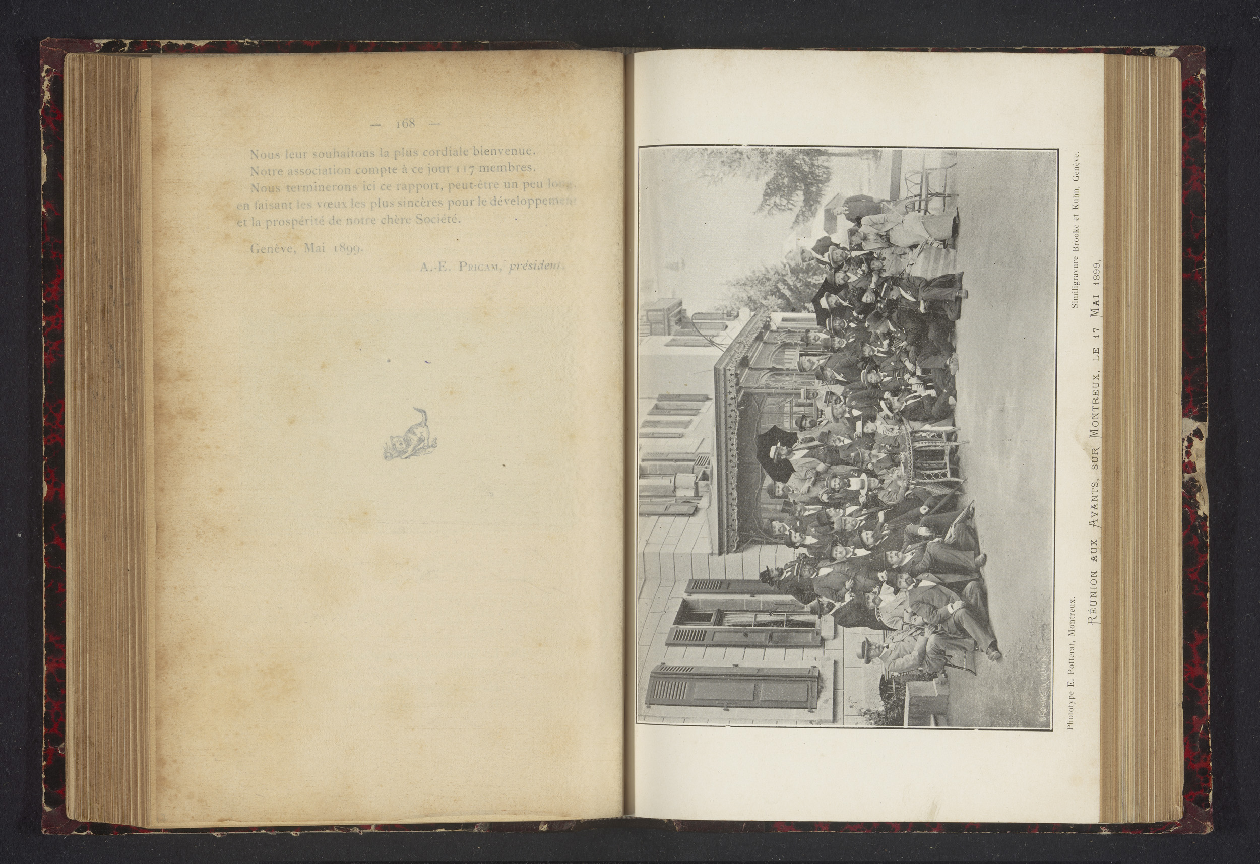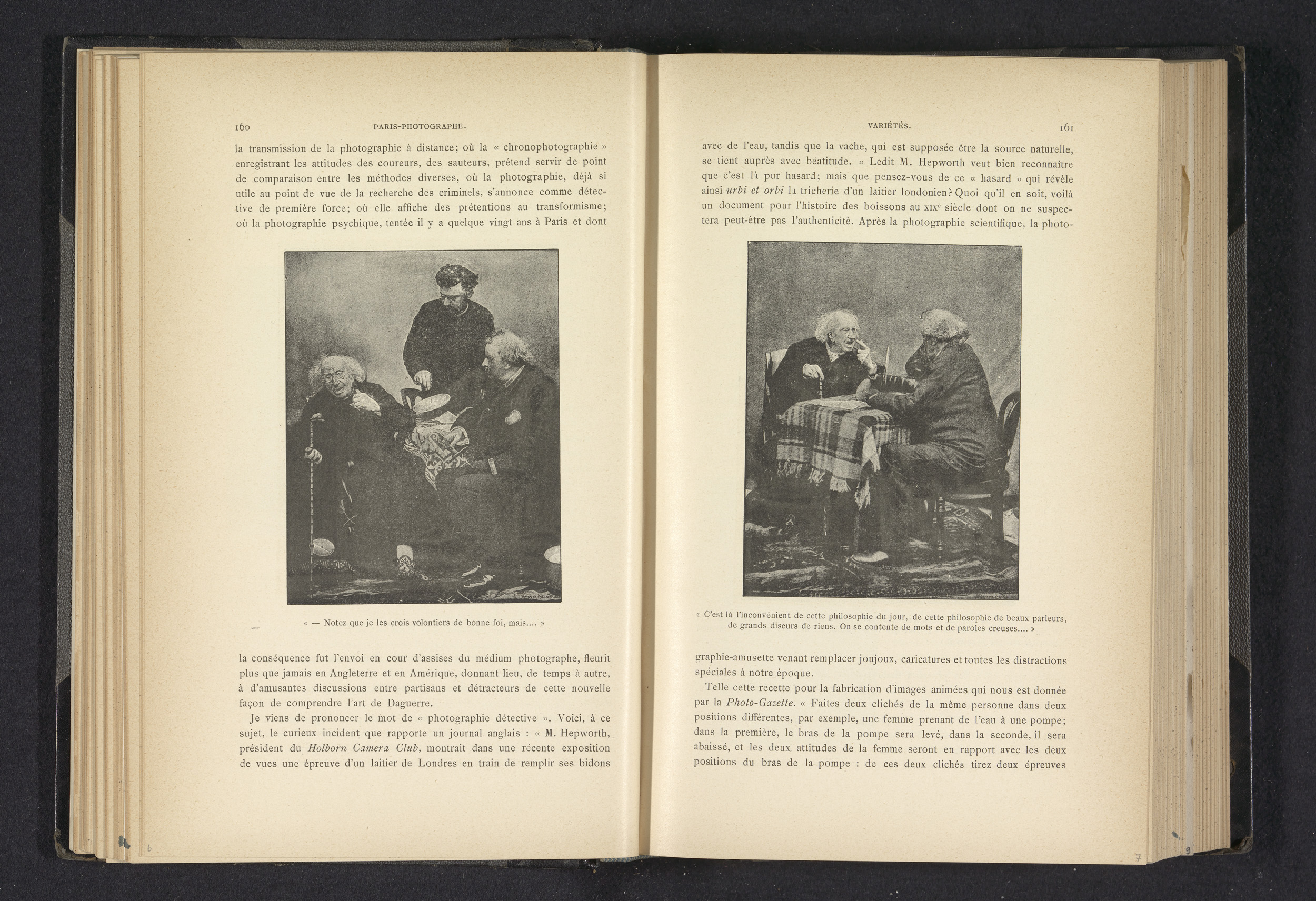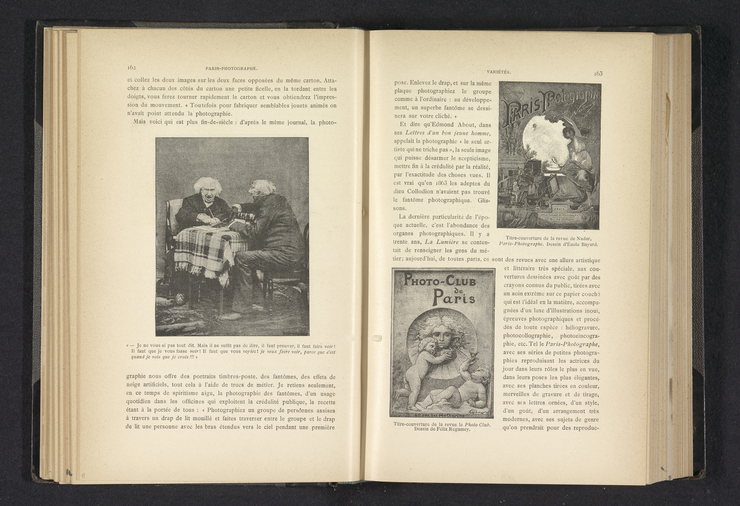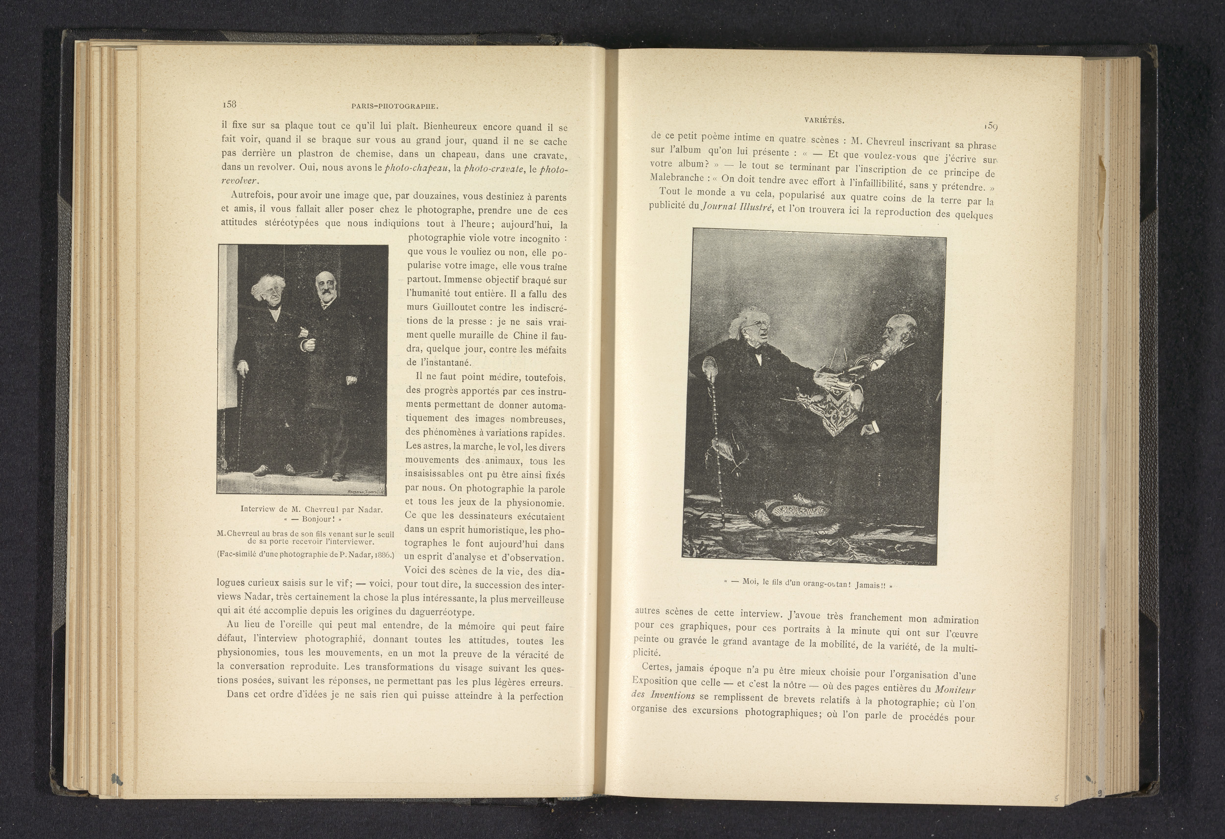 Michel Eugène Chevreul en Paul Nadar pratend aan tafel