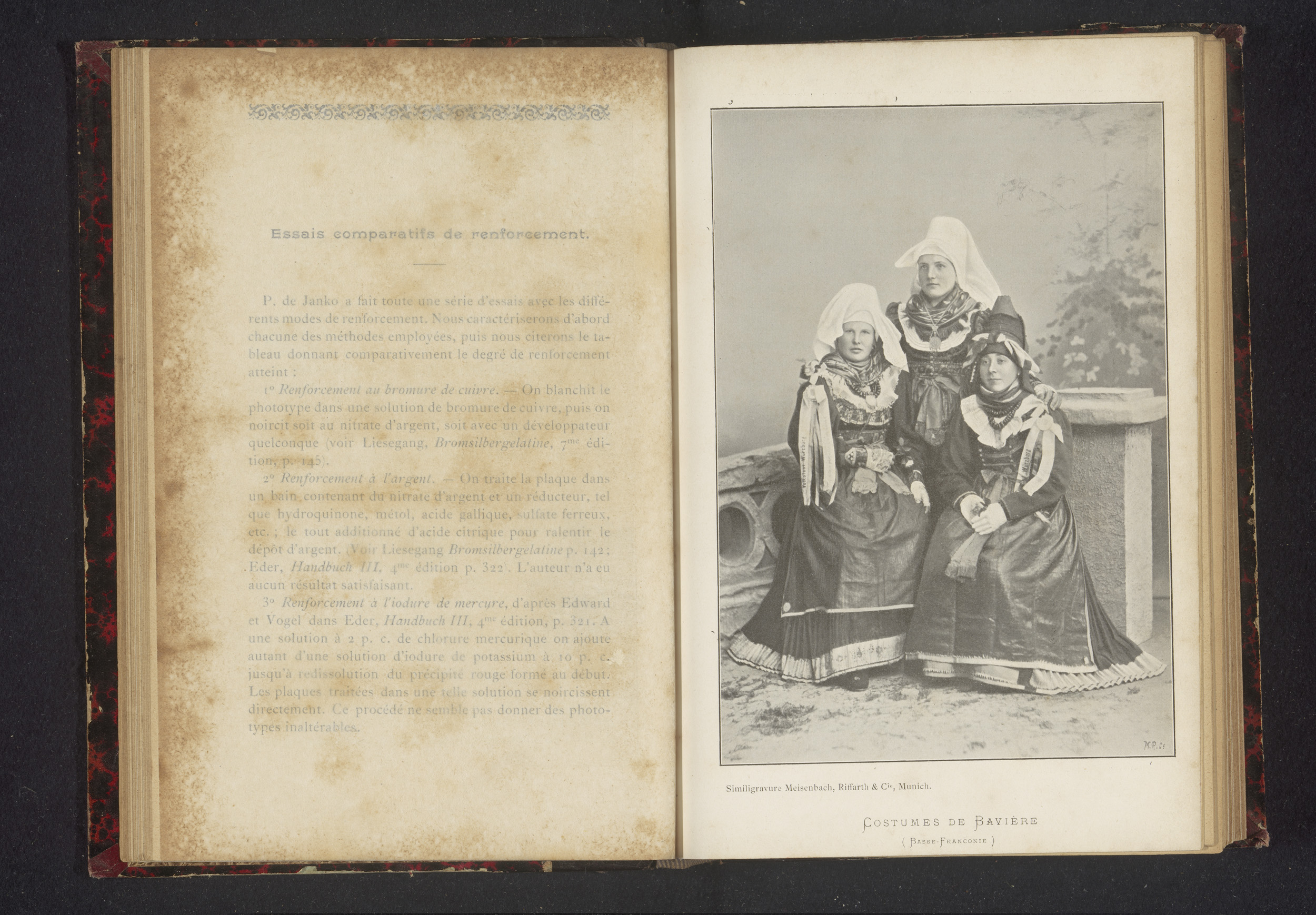 Portret van drie onbekende vrouwen in Beierse kostuums