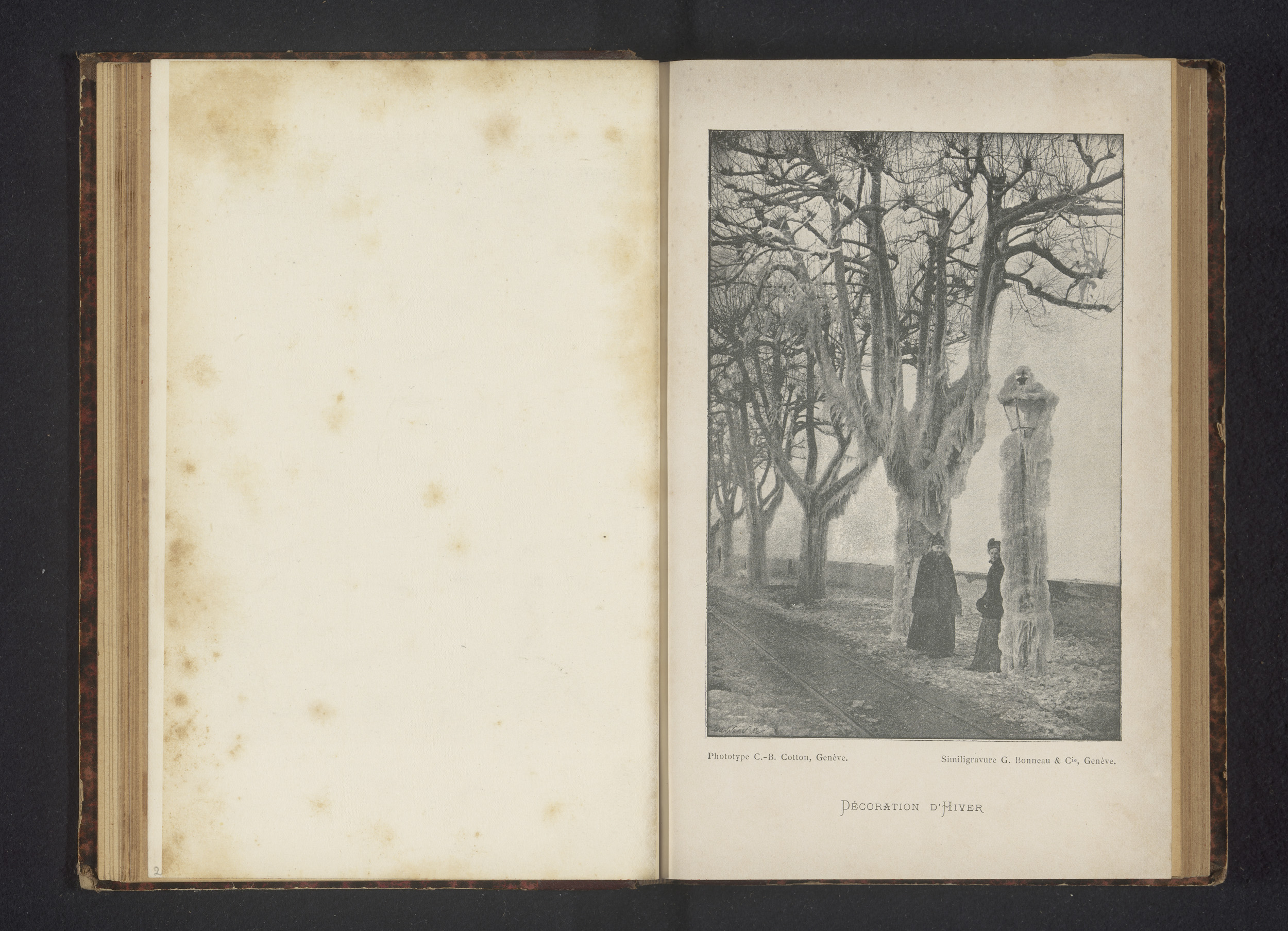 Man en een vrouw bij een bevroren boom en lantaarnpaal