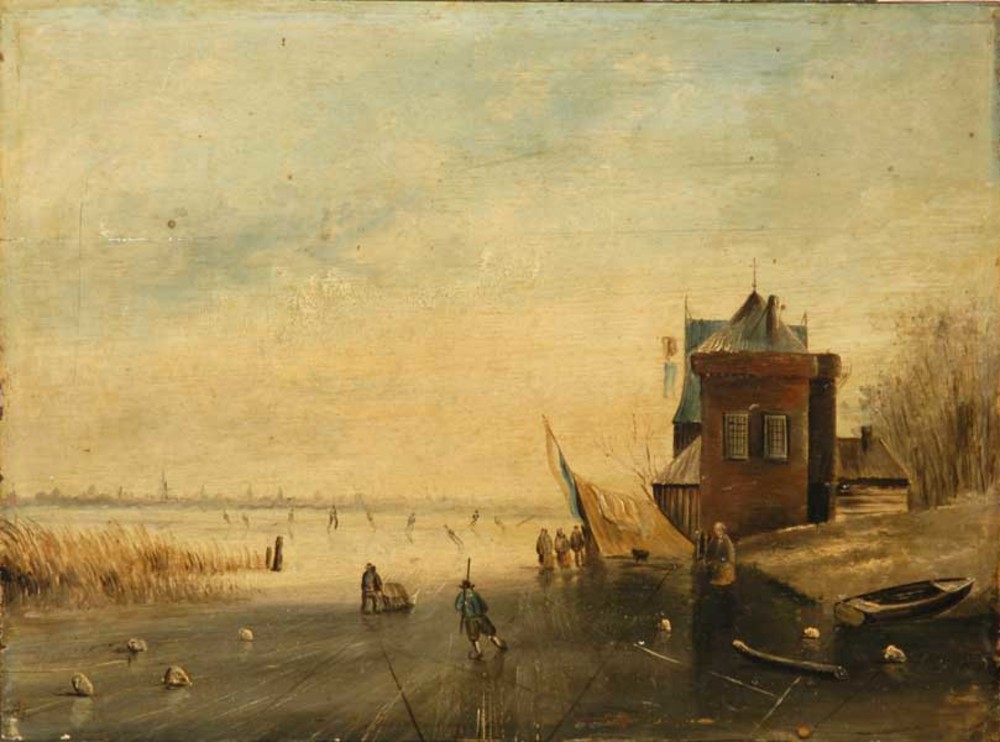 Schilderij, olieverf op hout, voorstellende een land...