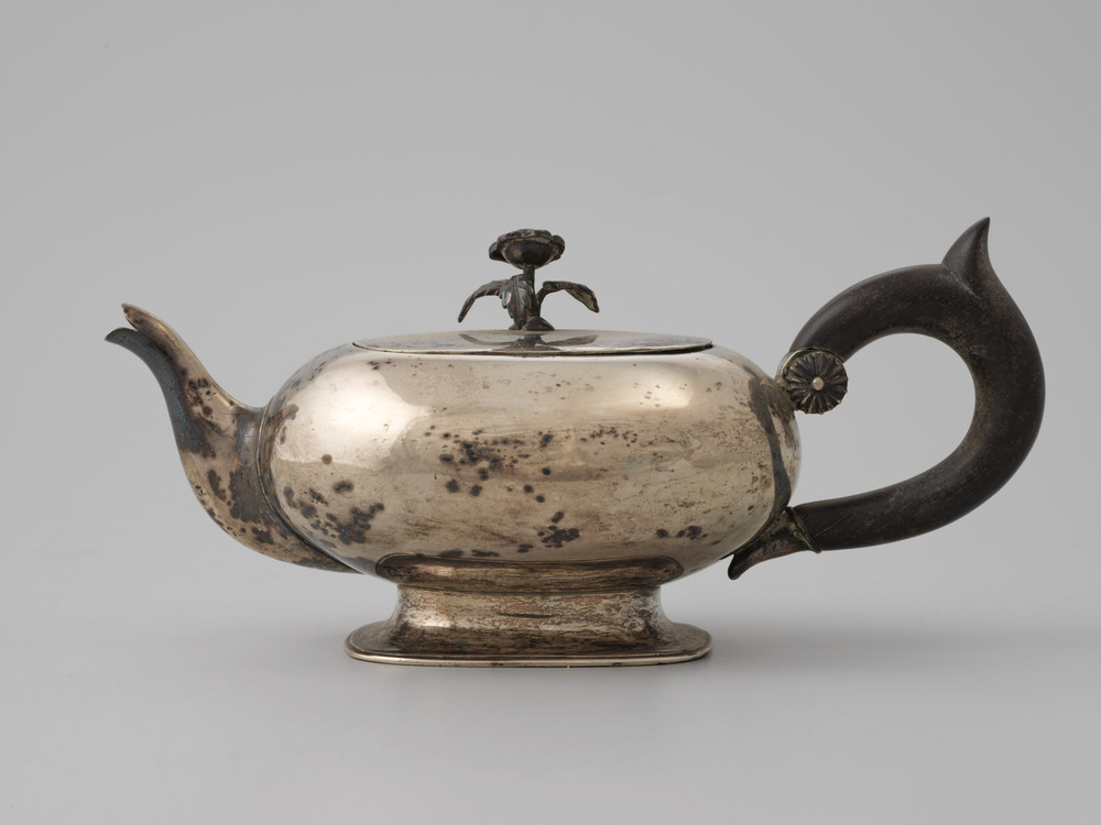 Zilveren theepot met ebbenhouten handvat