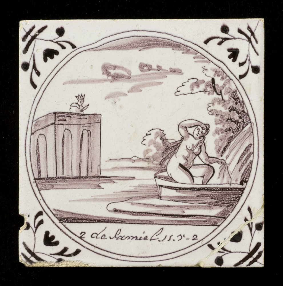 Tegel van keramiek met tinglazuur, voorstellende: Su...