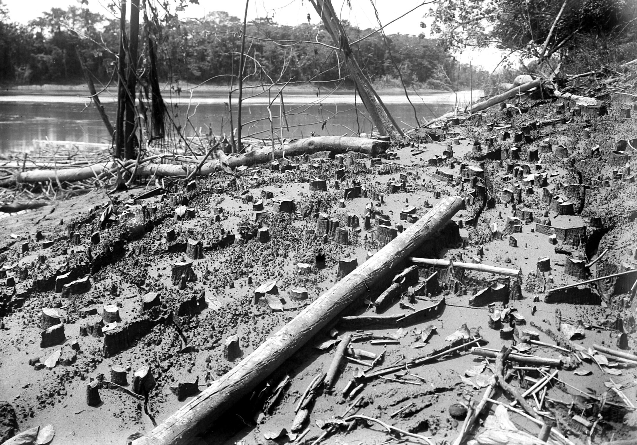 Stapelplaats voor mijnhout nabij zeefhuis