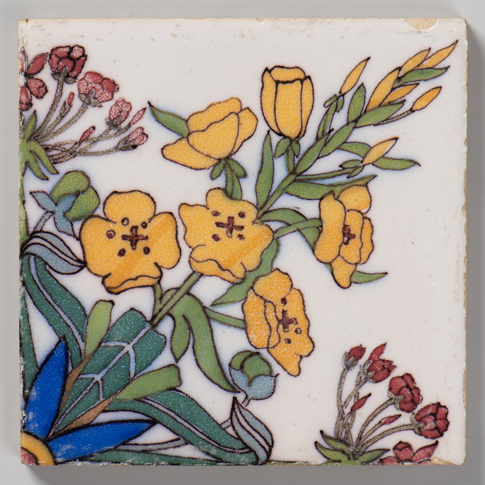 Tegel van keramiek, tinglazuur, voorstellende een bl...