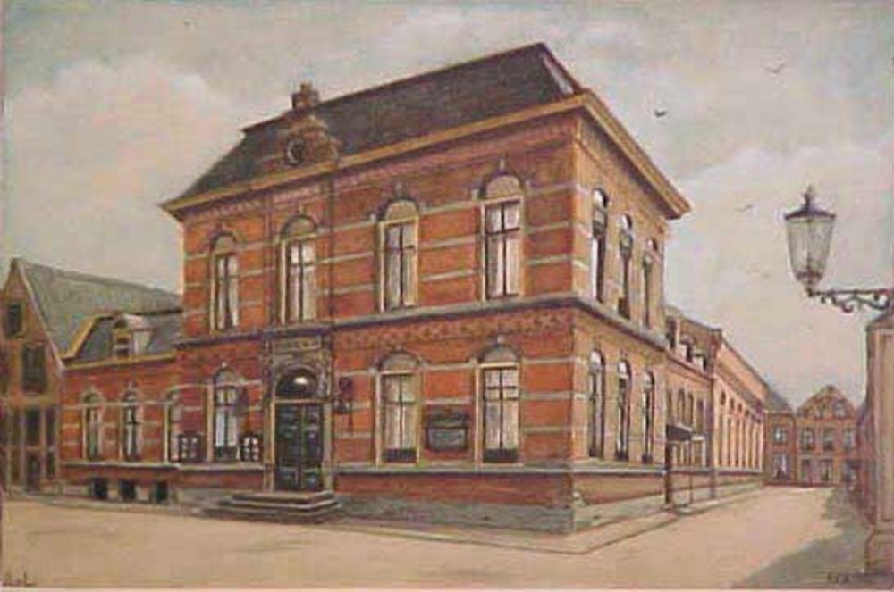 Aquarel, voorstellende het Spaarbankgebouw te Tiel, ...