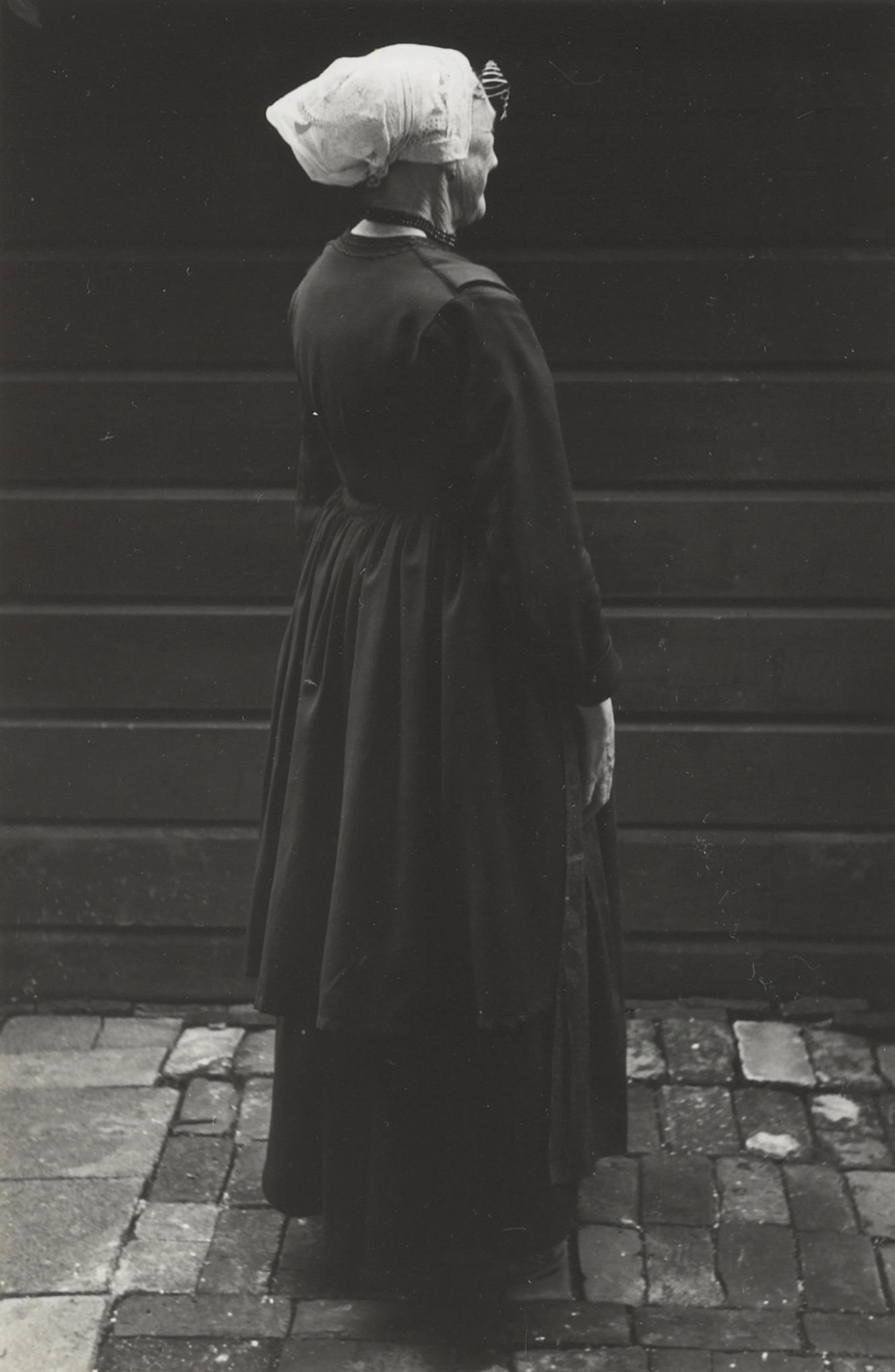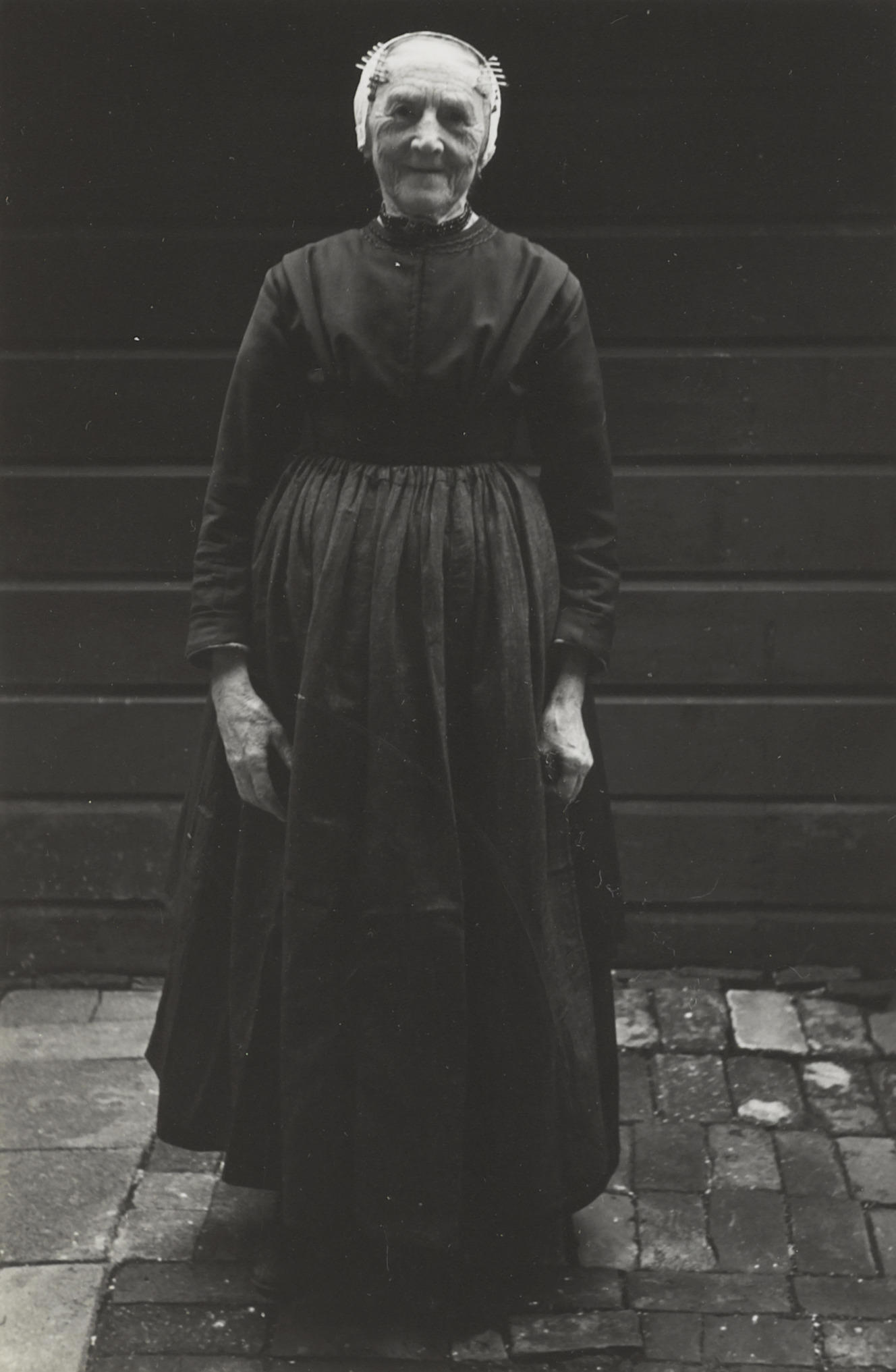 J. de Wind in Vlaardingse dracht, 1950 (zwart-wit foto)