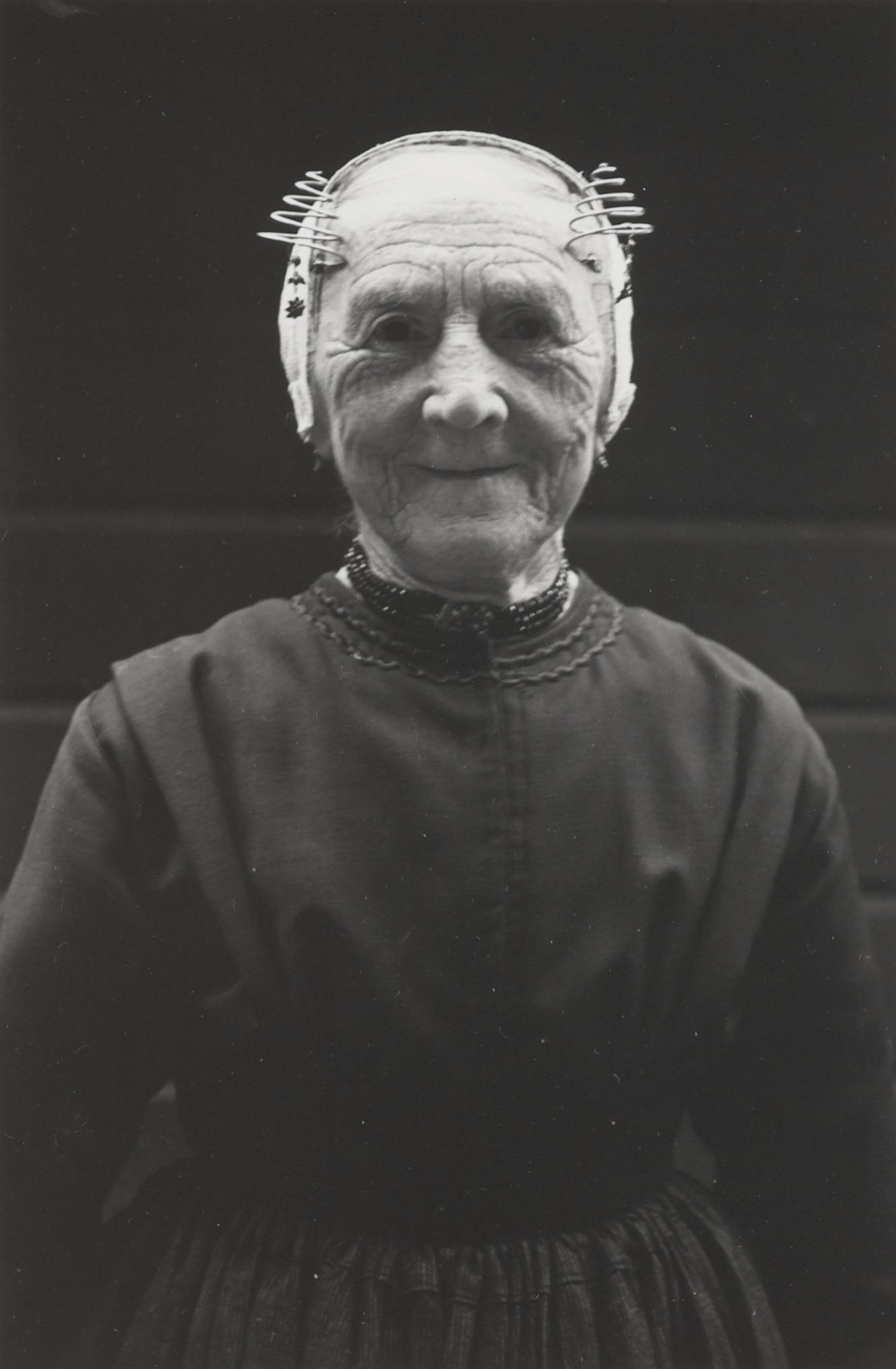 Vrouw in de streekdracht van Oost-Drenthe, 1950 (zwa...