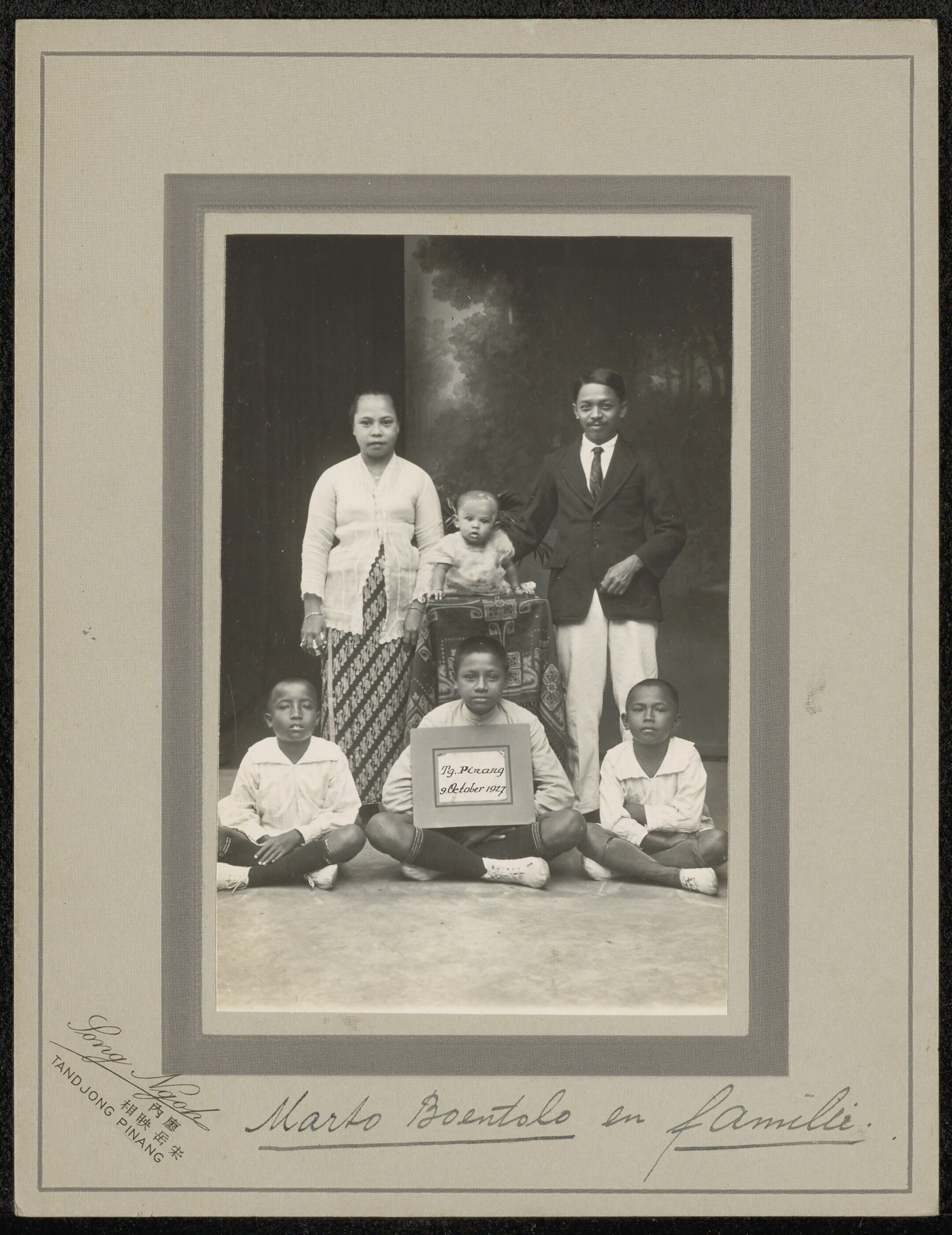 Portret van een Javaanse man met twee kinderen