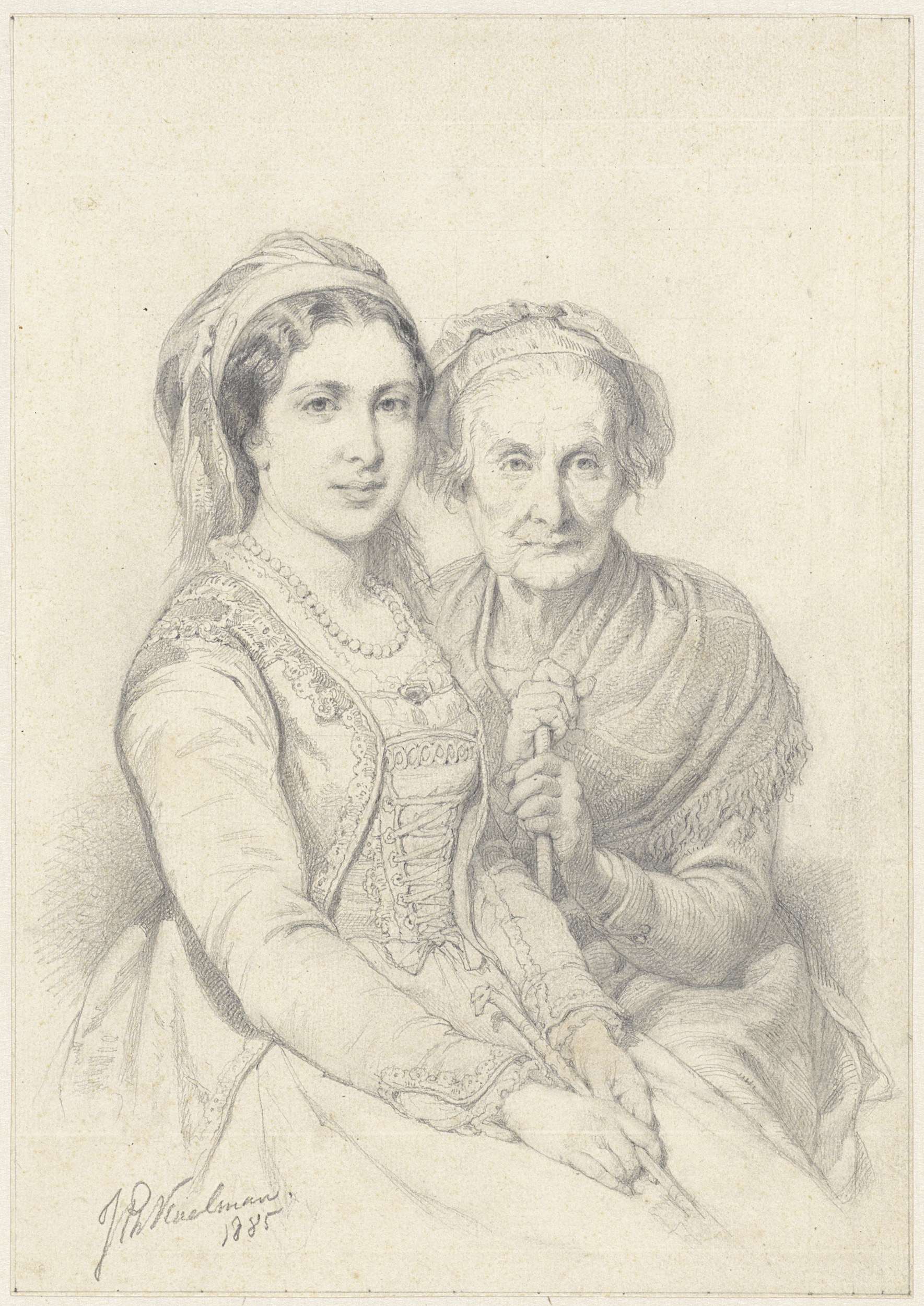 Portret van een jonge en een oude vrouw