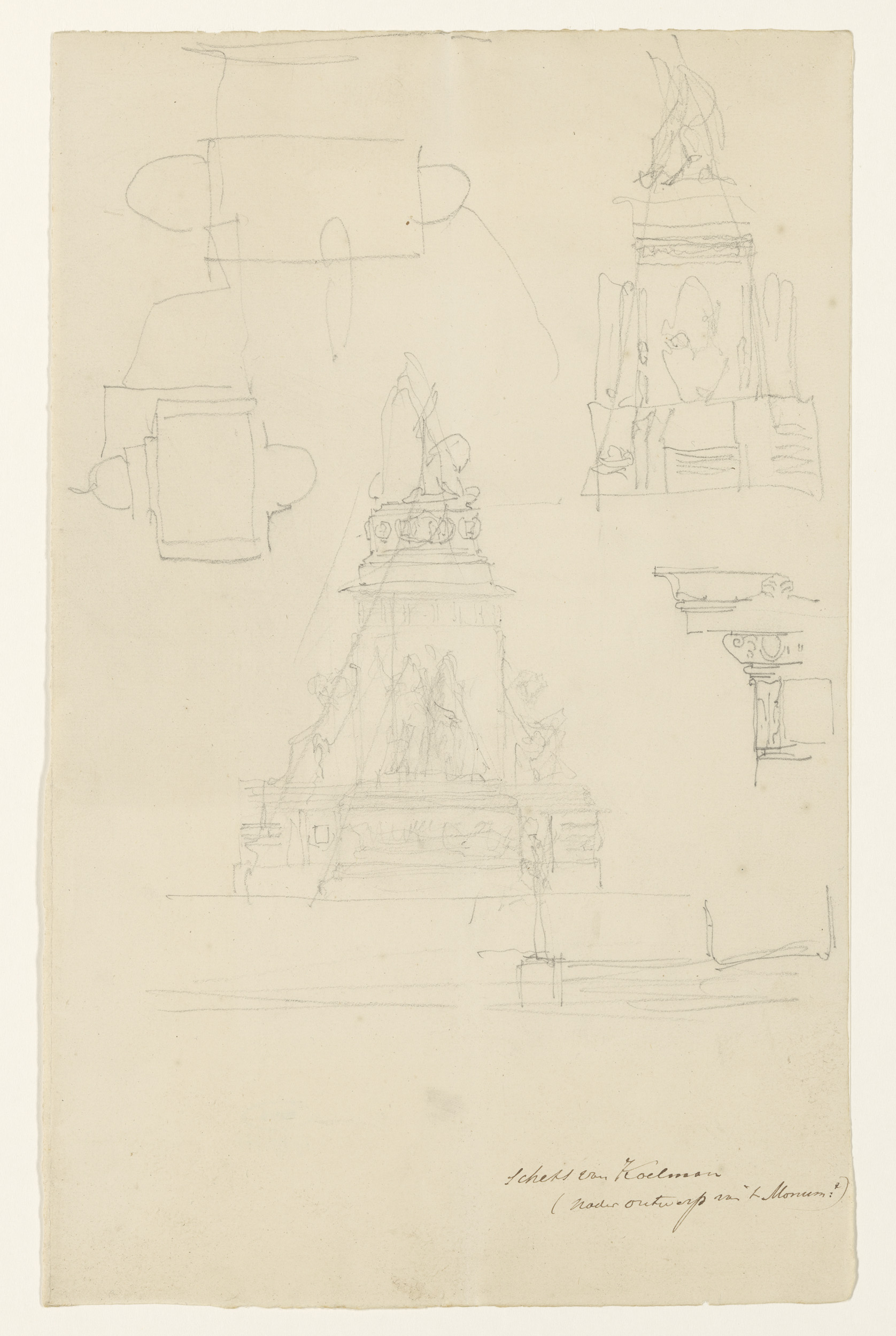 Schetsblad met ontwerp voor het monument voor Bernha...