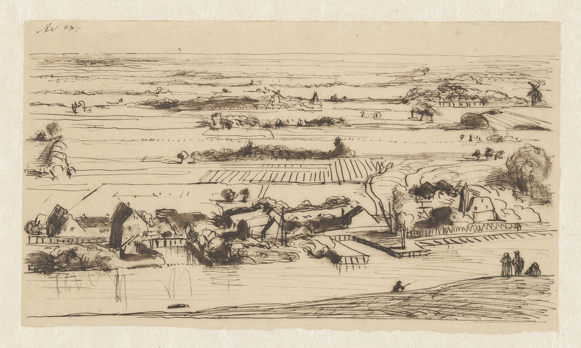 Landschap met tekenaar, geestelijke en andere figuren