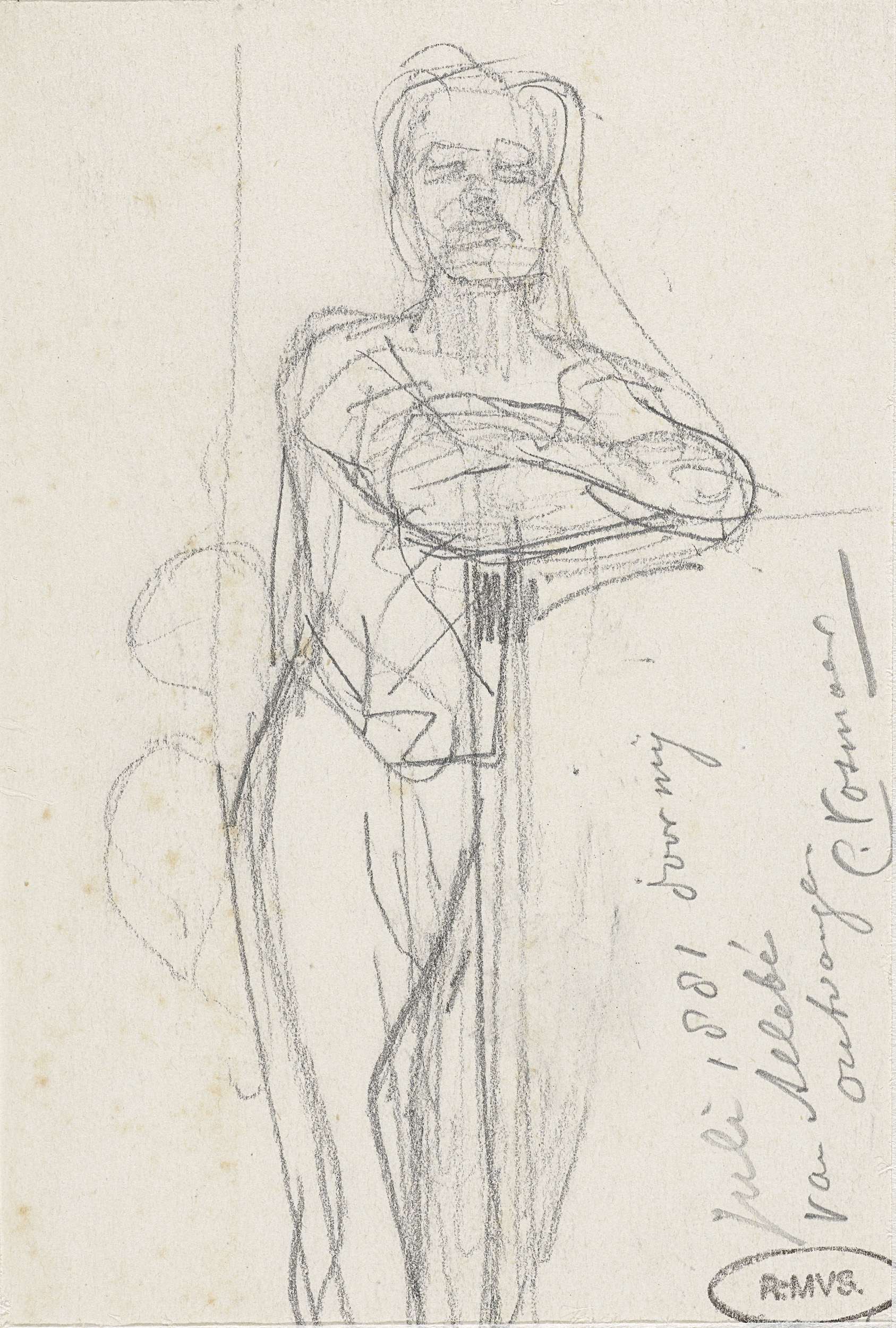 Studies voor de kleding van een vluchtende monnik