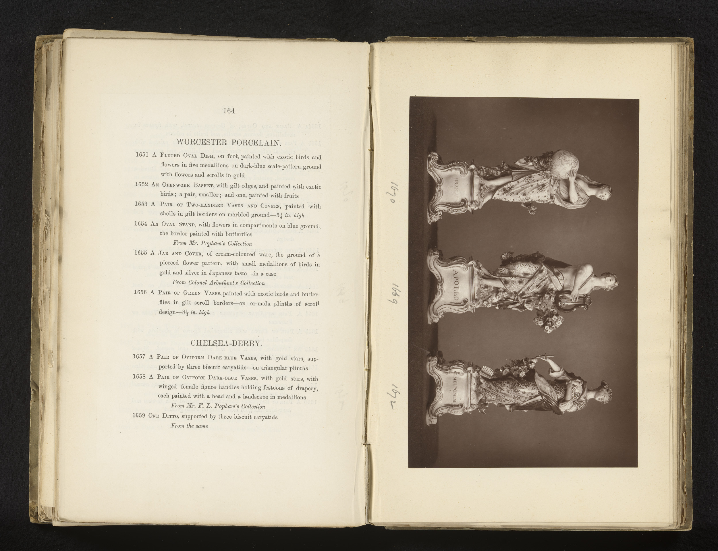 Drie porseleinen beelden van Apollo en de muzen Uran...
