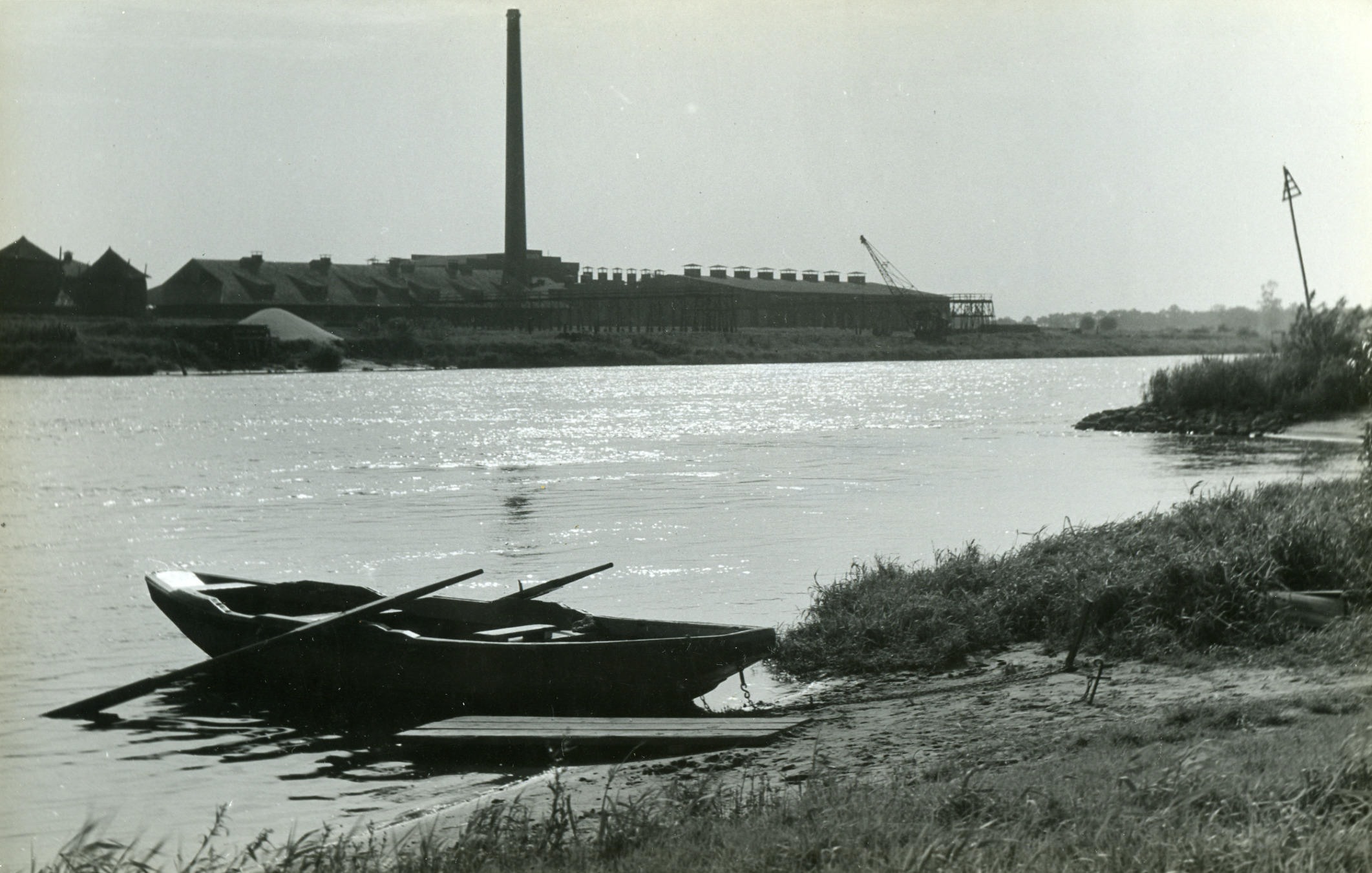 Veerboot in de IJssel bij Veessen, 1945 (zwart-wit f...