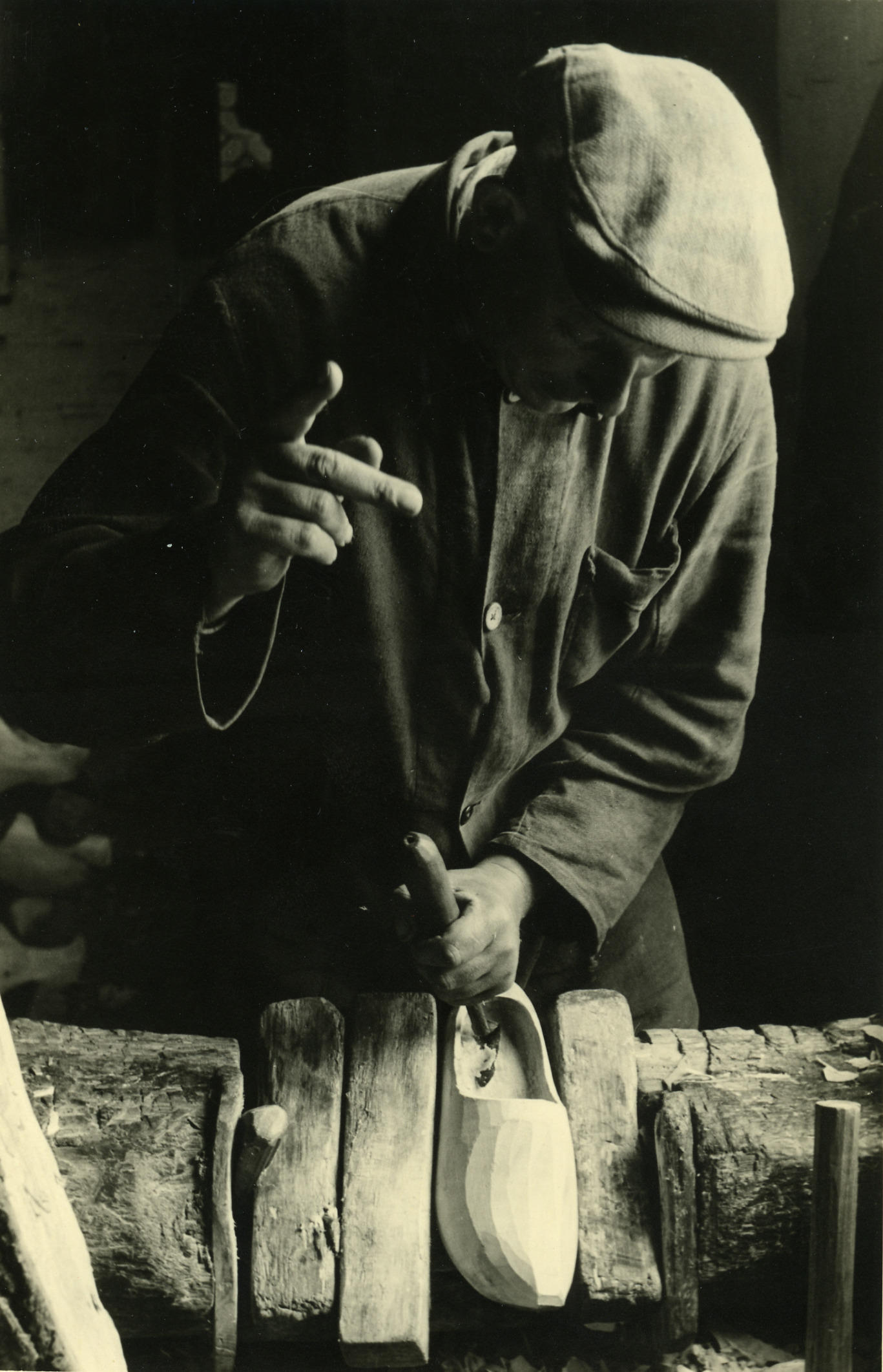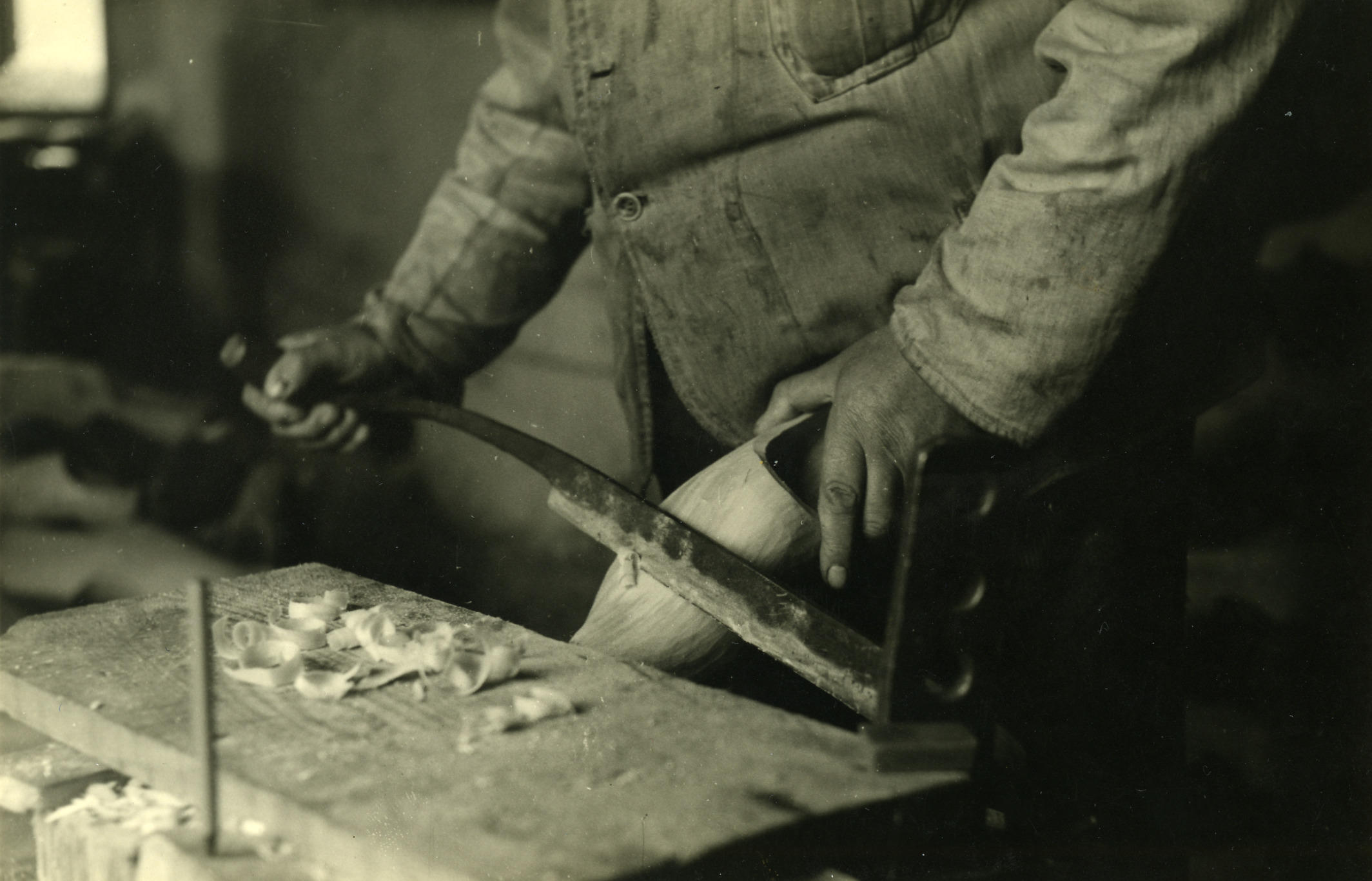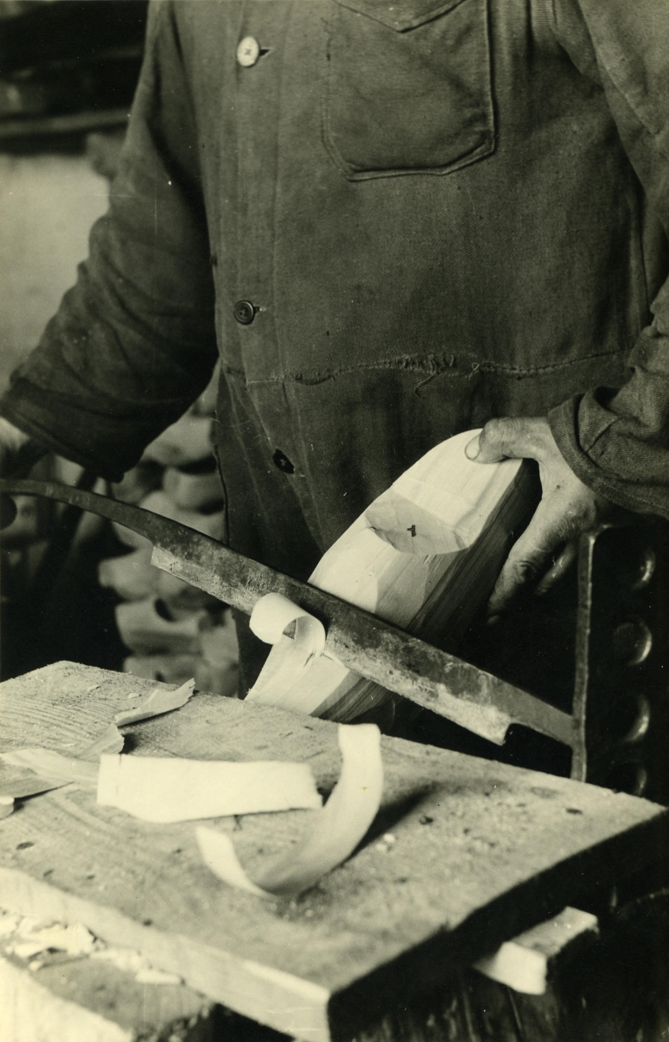 Klompenmaken, Veessen, 1945 (zwart-wit foto)
