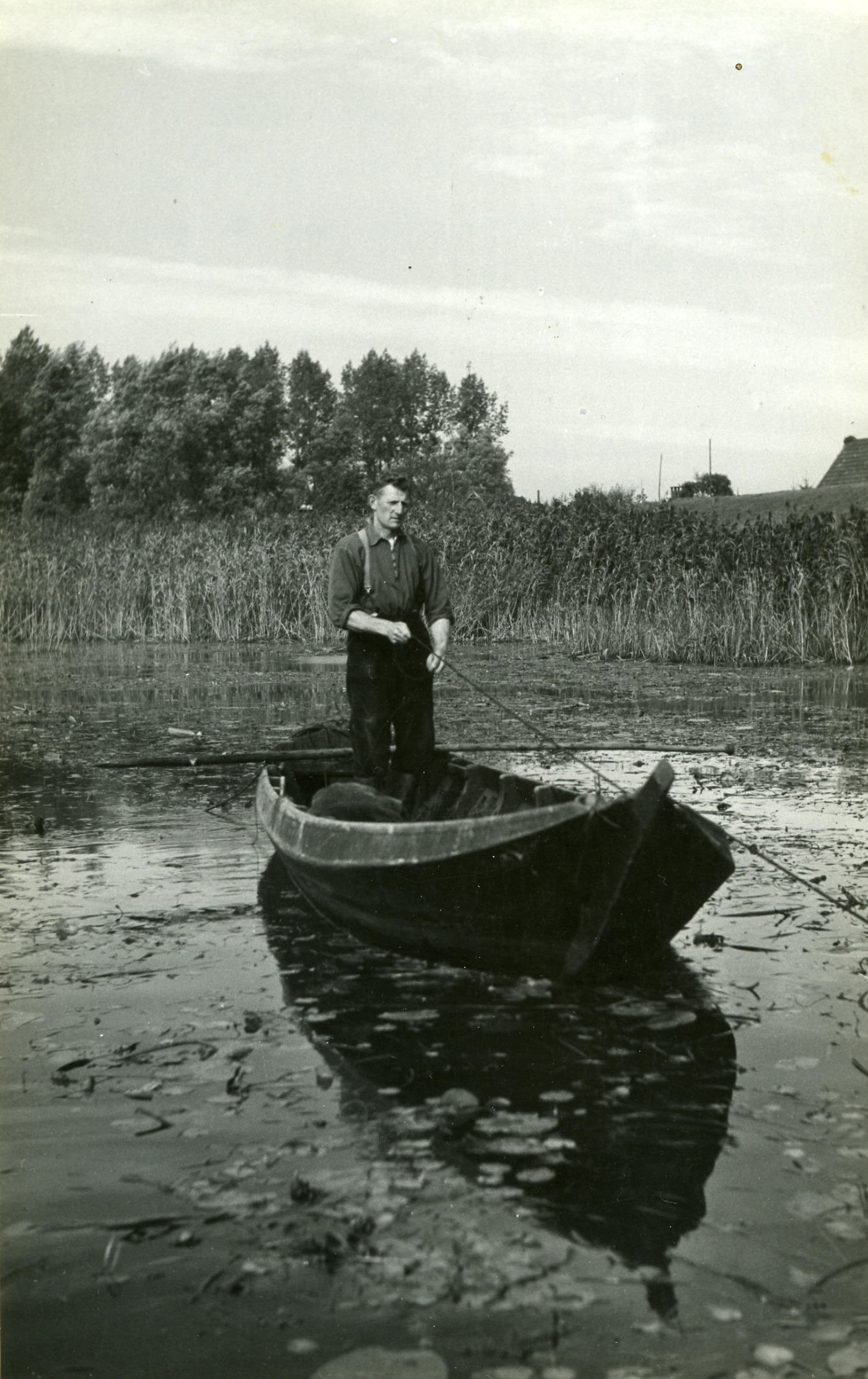 Visser in Gieterse punter bij Veessen, 1945 (zwart-w...