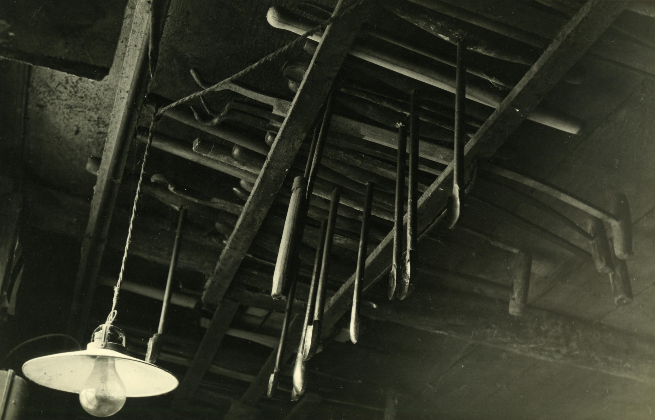 Klompenmakersgereedschap, Veessen, 1945 (zwart-wit f...