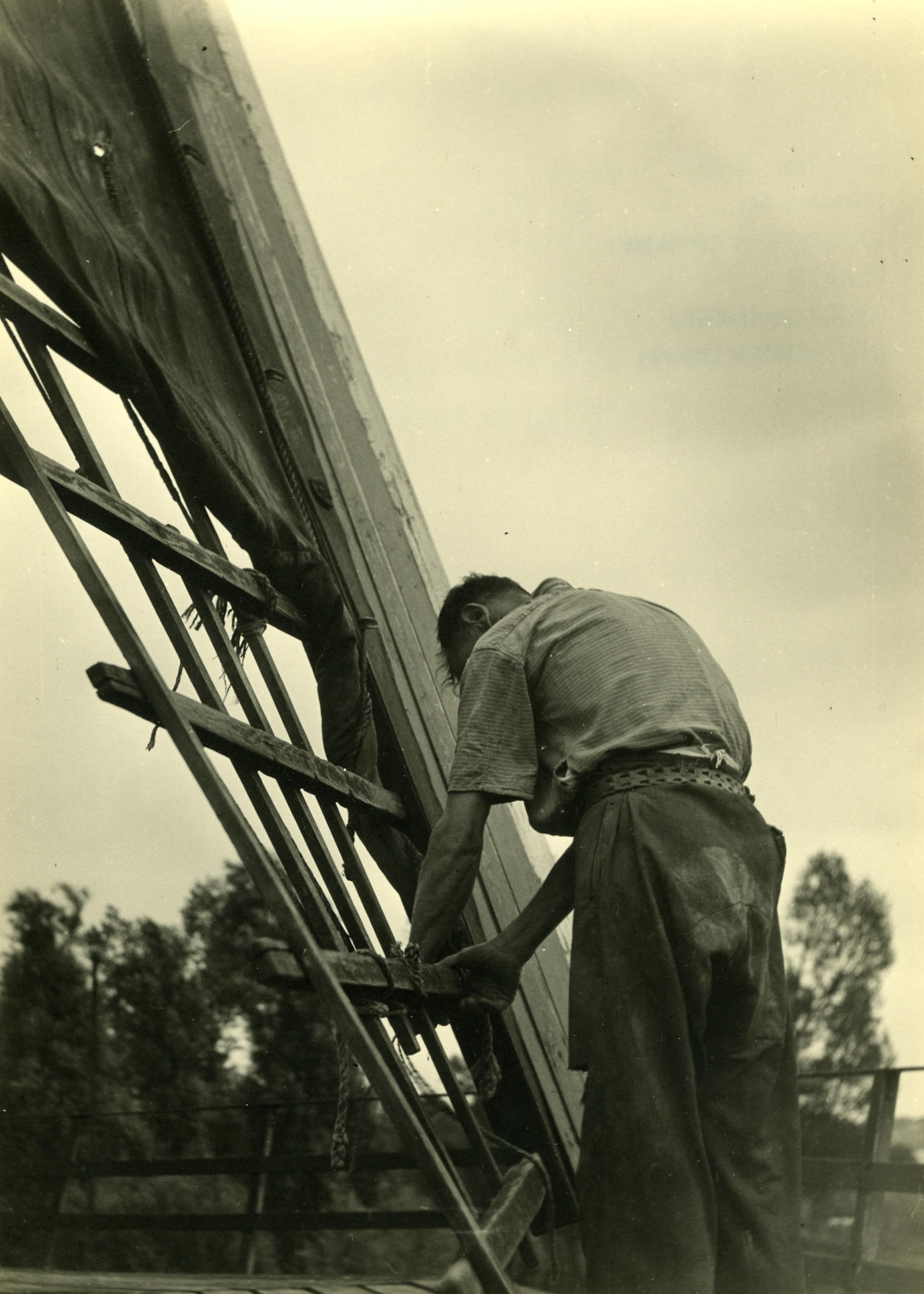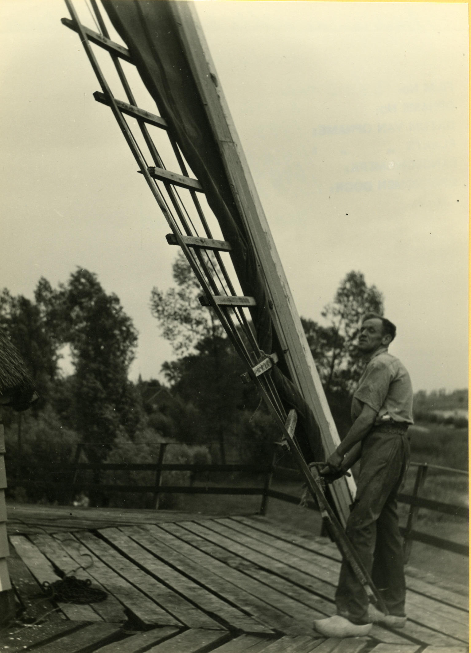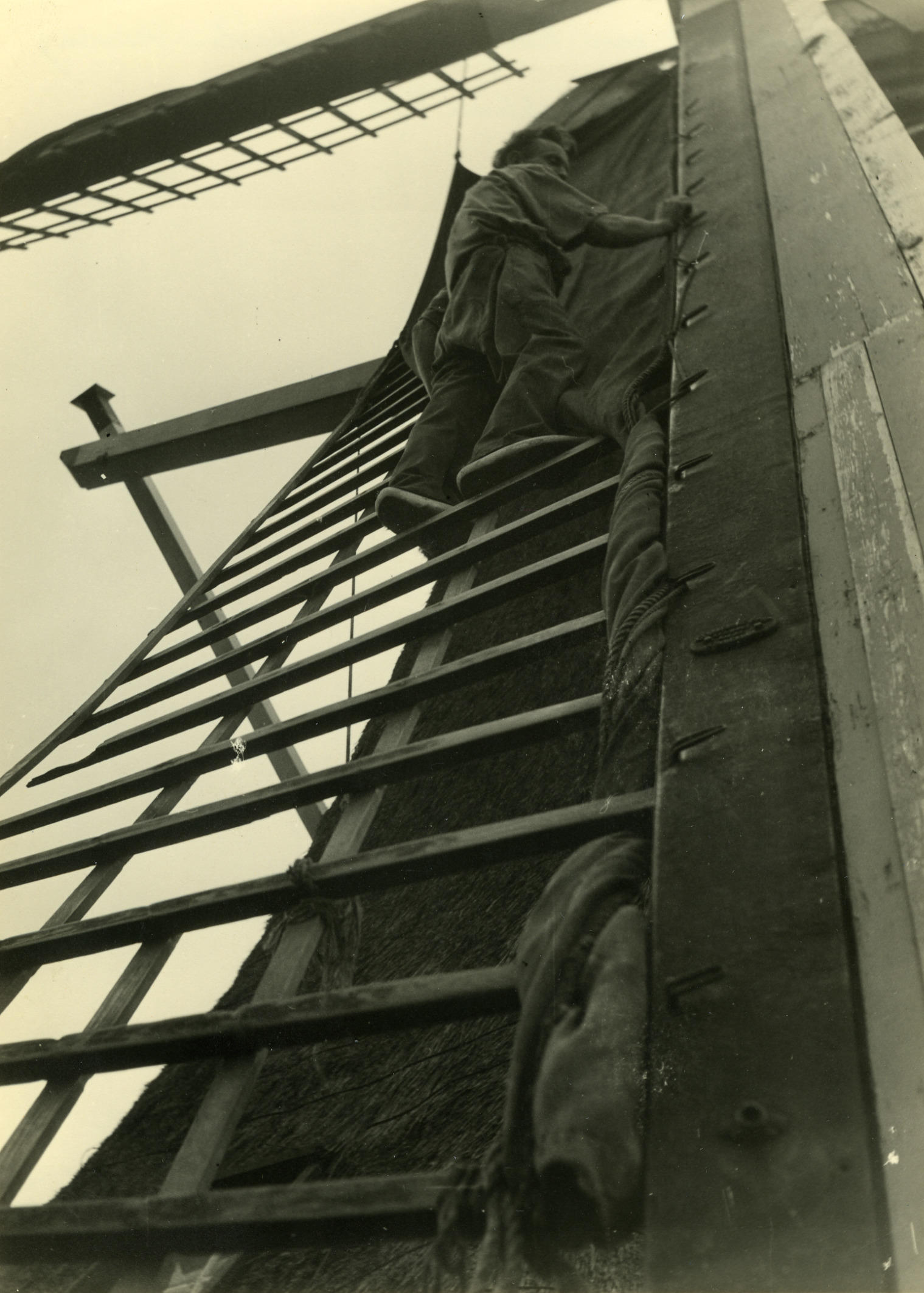Opzeilen van een molenwiek, Veessen, 1945 (zwart-wit...